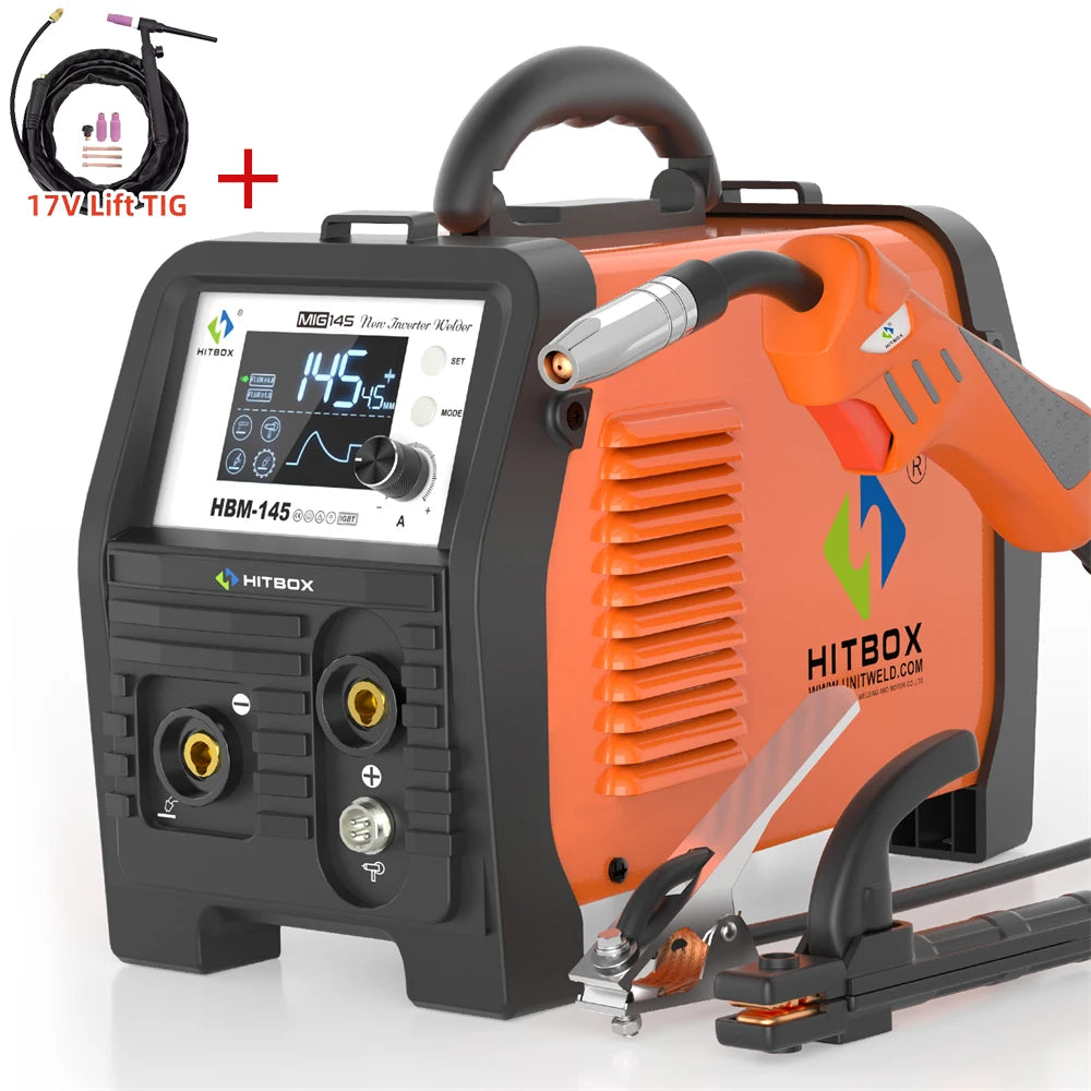 HITBOX 145A 4 in 1 Multi-process MlG Welder MMA/Gasless MIG/Lift TIG Welding Machine Support Spool Gun Large LED Display Welders