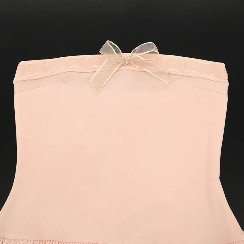 Pink A-Line Dress Women Sweet Summer New Fashion Bow Sleeveless Sexy Strapless Dresses Bodycon Streetwear Club Lady Party Dress