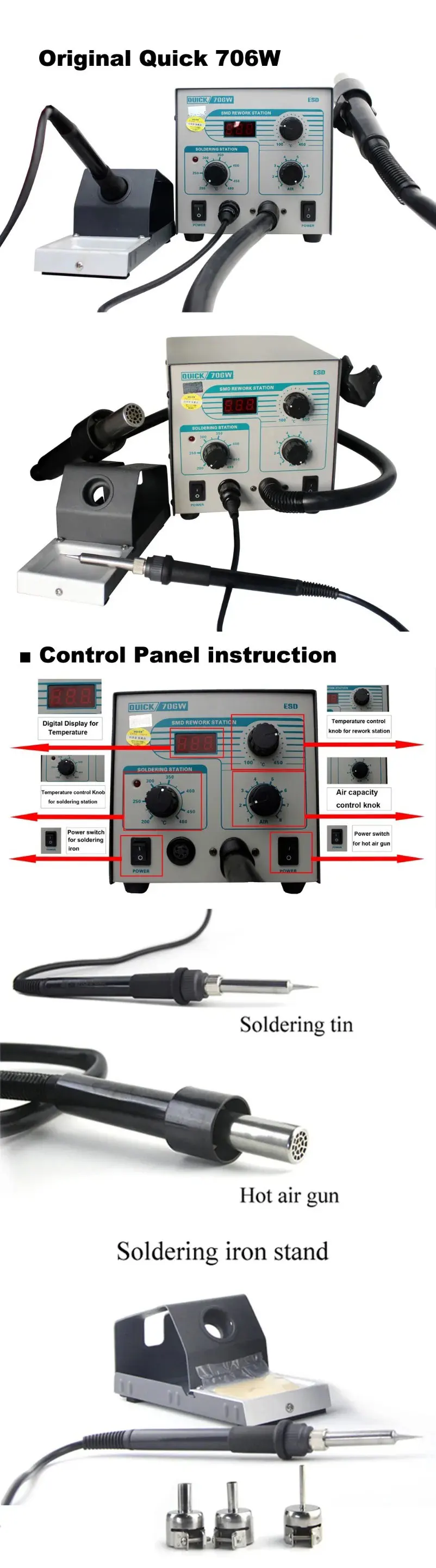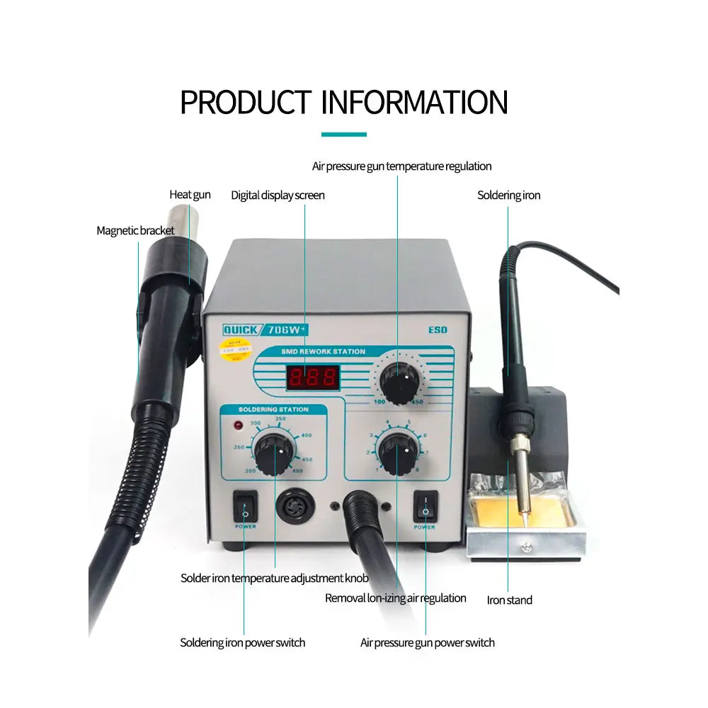 QUICK706W+ 2 in1 Intelligent Hot Air Smd Rework Soldering Station Iron Desoldering Heat Gun Kit for Phone Welding Repair