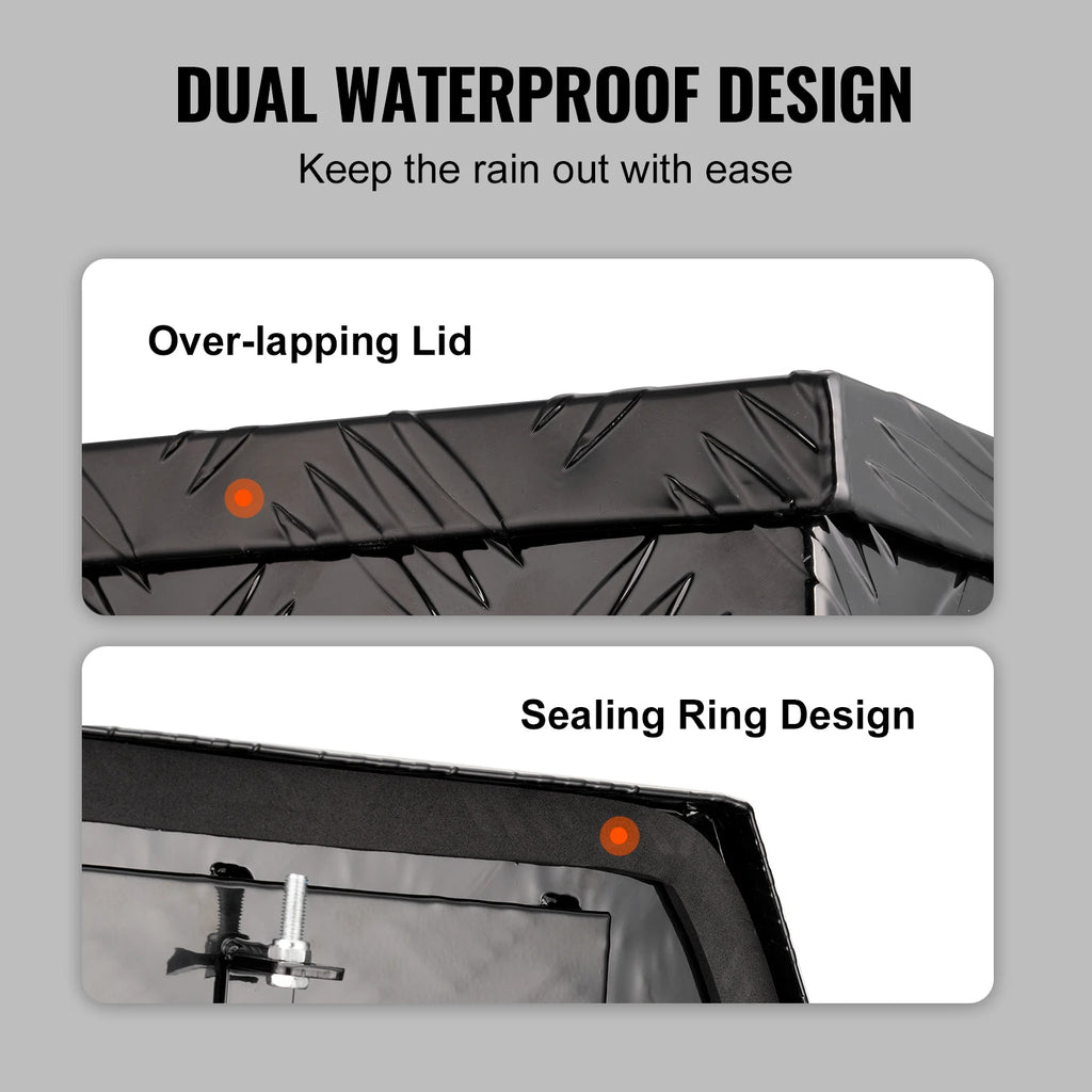 Crafted from thick aluminum alloy, this trailer tool box offers outstanding durability and load-bearing capacity without risk of bending or warping. A dual-layer dusting process enhances its resistance to rust and corrosion, ensuring it remains reliable for years to come.