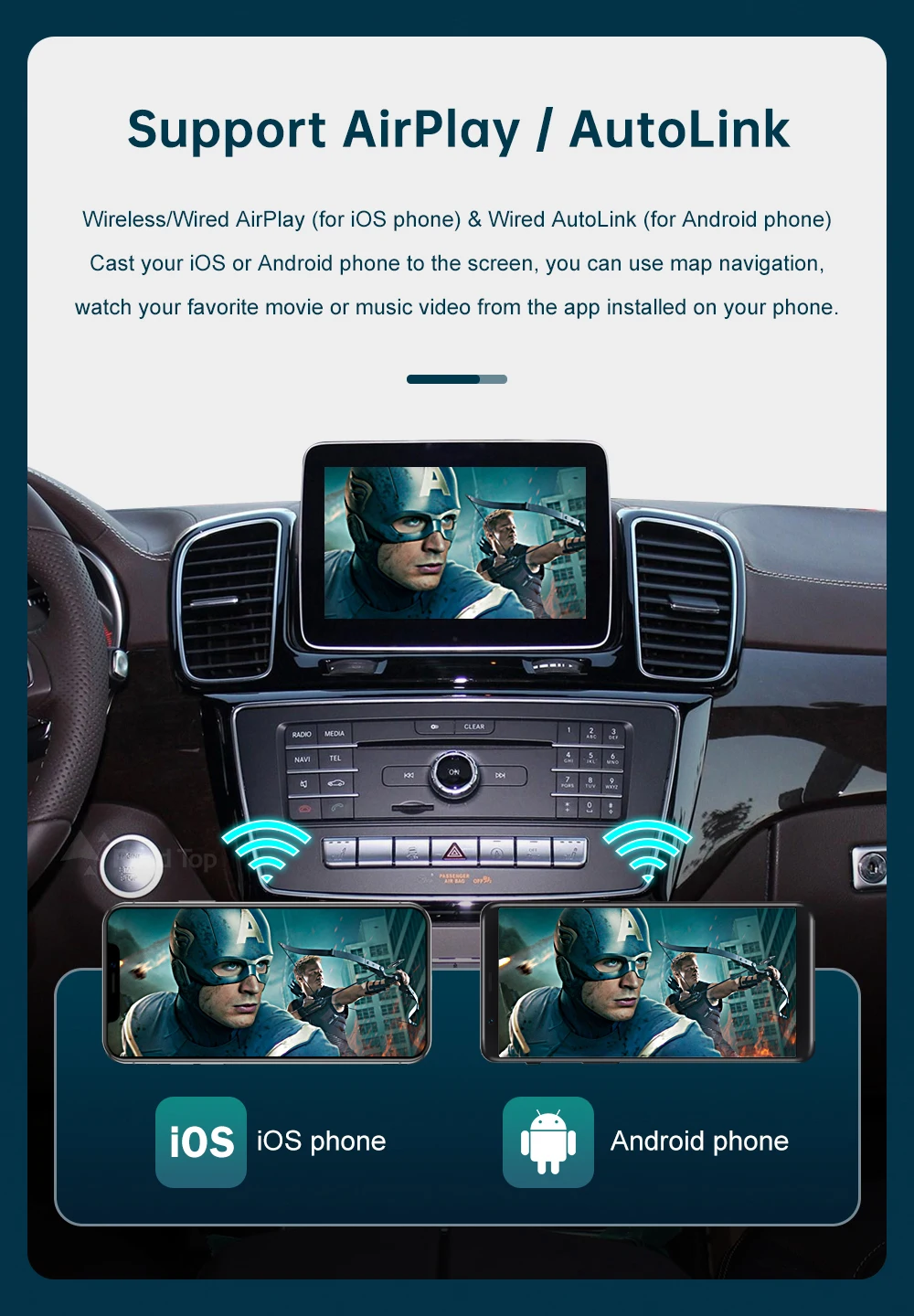 Wireless CarPlay for Mercedes Benz GLE GLS 2016-2018, with Android Auto Mirror Link AirPlay Car Play Functions