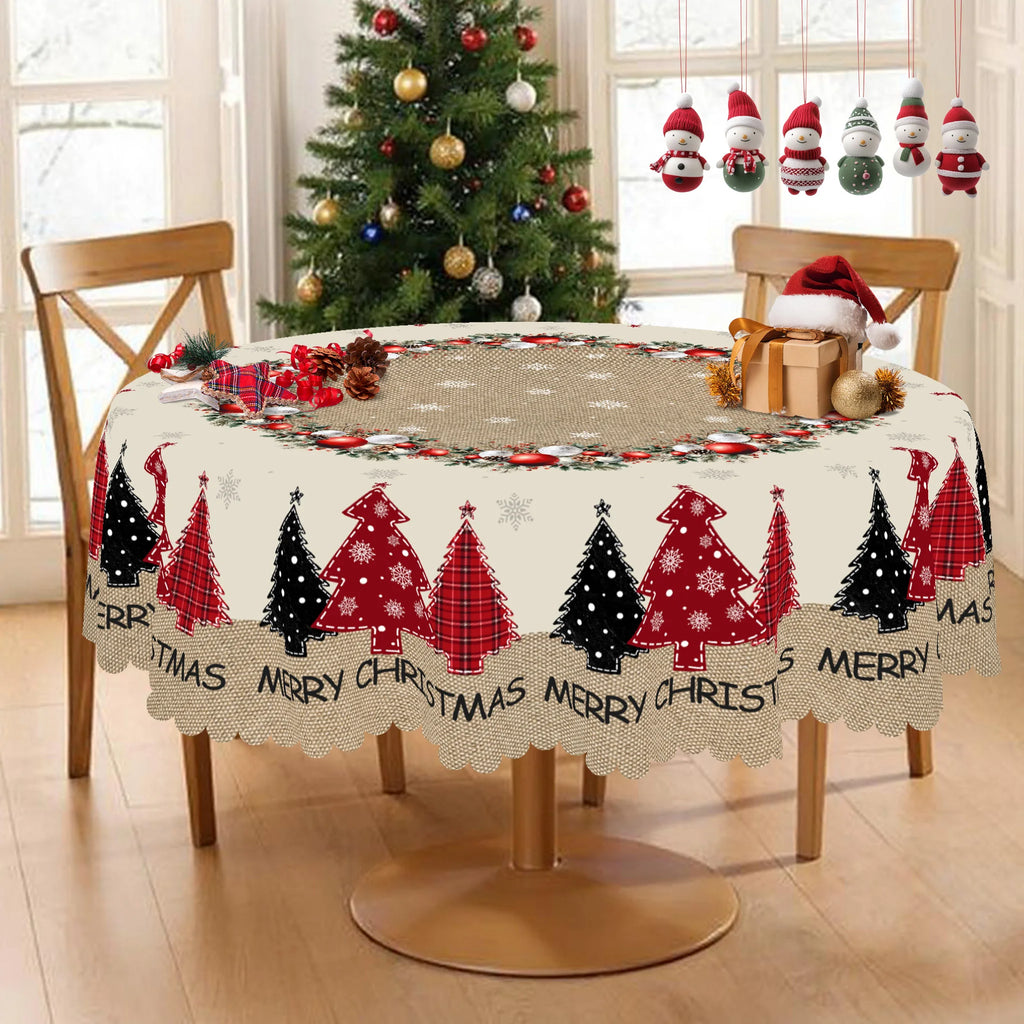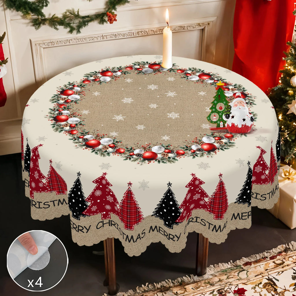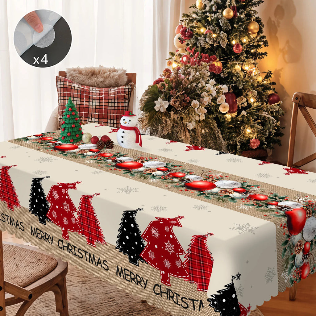 1 Piece, Merry Christmas Themed Christmas Tree Pattern Tablecloth + 4 Self-Adhesive Stickers, Christmas Atmosphere, Snowflake Christmas Tree Christmas Flower Ball Pattern, Embossed Edges, Suitable for Home Kitchen, Living Roo