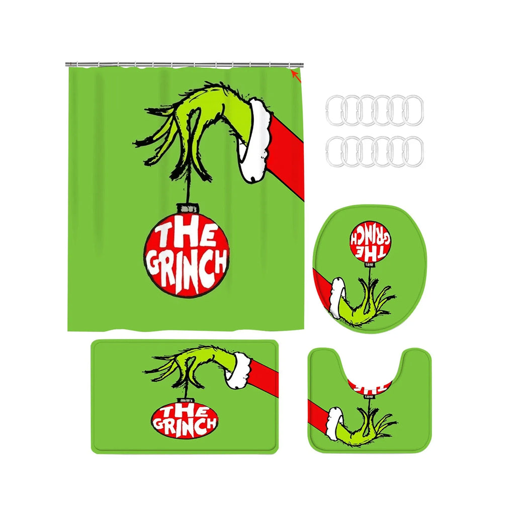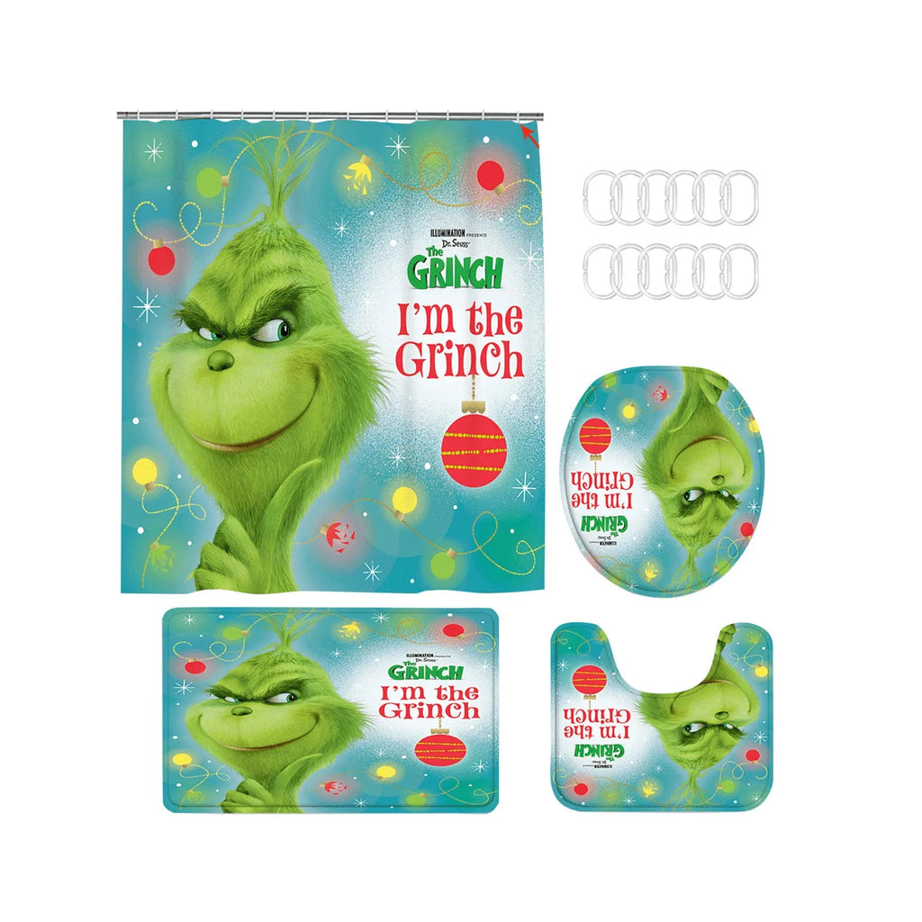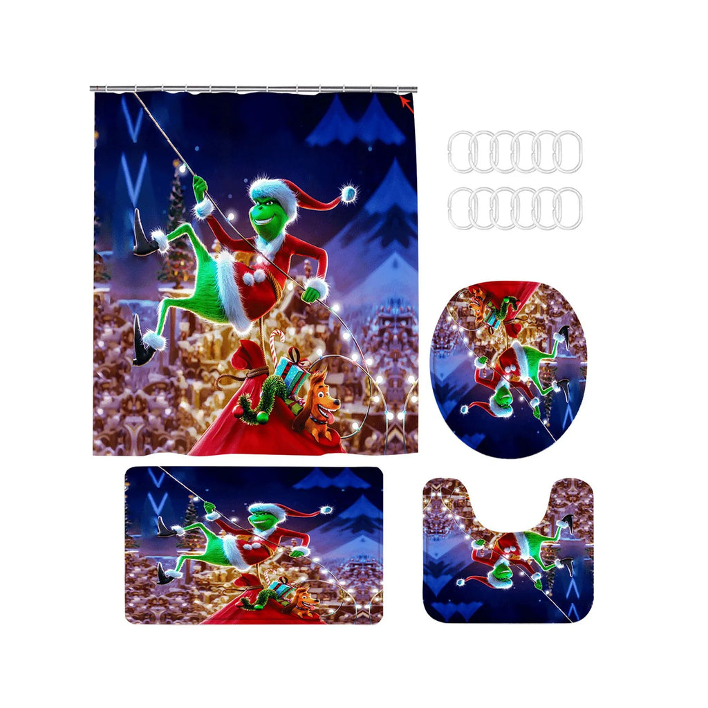 2024 New Christmas Snowman Print Toilet Bathroom Mat And Shower Curtain Four-Piece Set Bathroom Ornaments Fun Decorative