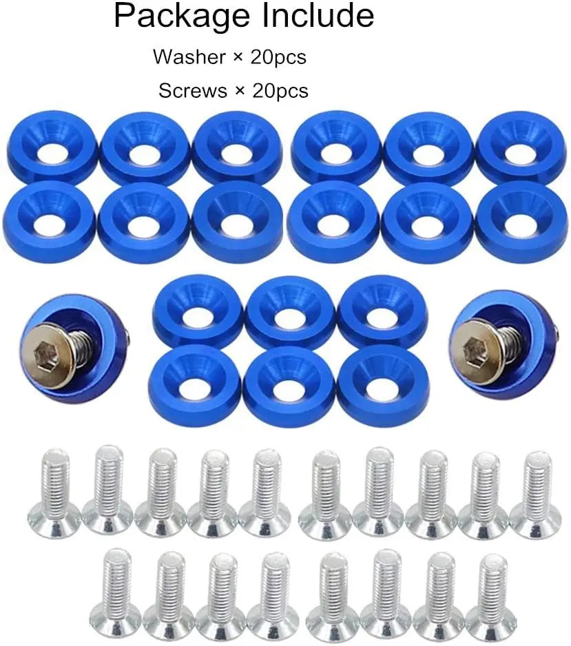 1、20pcs brand new bumper washer bolt kit, universal fit for most vehicles 2、Made of high quality CNC billet aluminum and are anodized for the best finish and durability 3、These washers and bolts can be used in places like fenders, bumpers, headlights, trunk, license plate frame, and anywhere else they will fit 4、Different color for you to choose, these washers and bolts also a great decoration item for dress up your vehicle's engine bay 5、Compact and lightweight design, very convenient to carry, easy installation