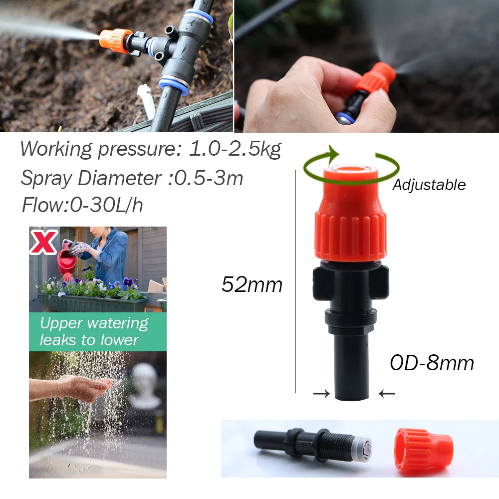 ✿ **Orange Nozzle**: Working pressure 1.0-2.5kg Spraying diameter about 0.5-3m spraying flow rate about 0-30L/h.