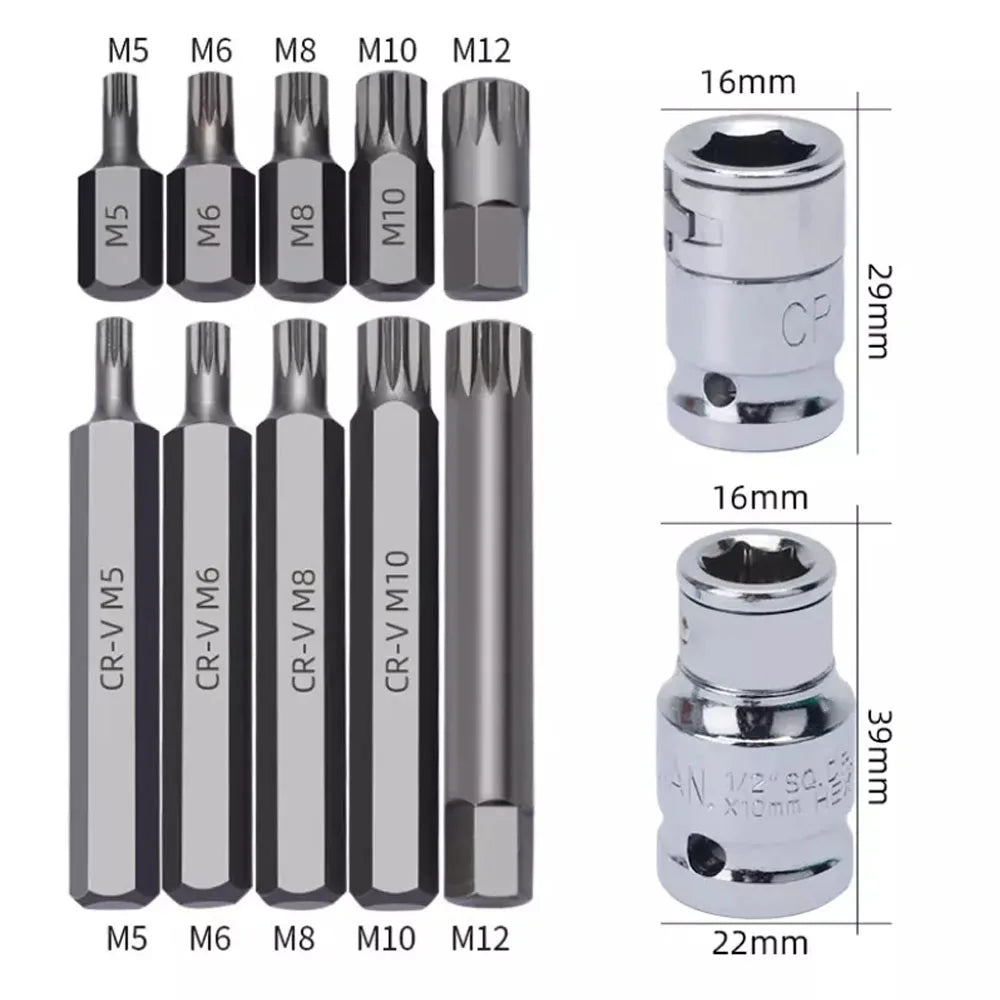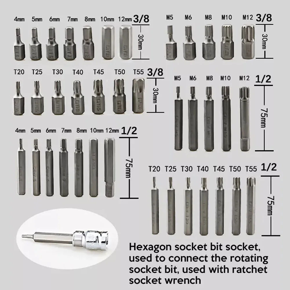 40Pcs/Set 3/8" & 1/2" Drive Allen Key Torx Hex Star Spline Socket Bit Chrome Sockets Set Handle Tools Kit With Case