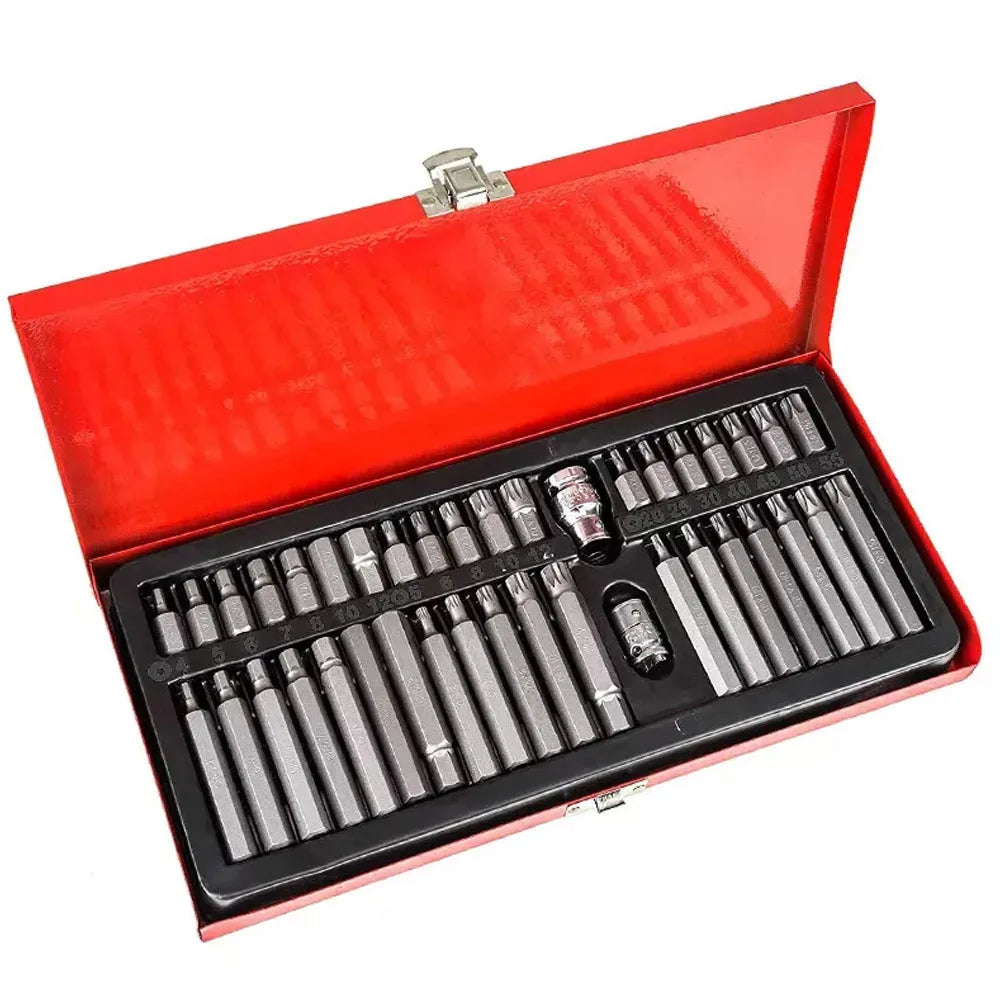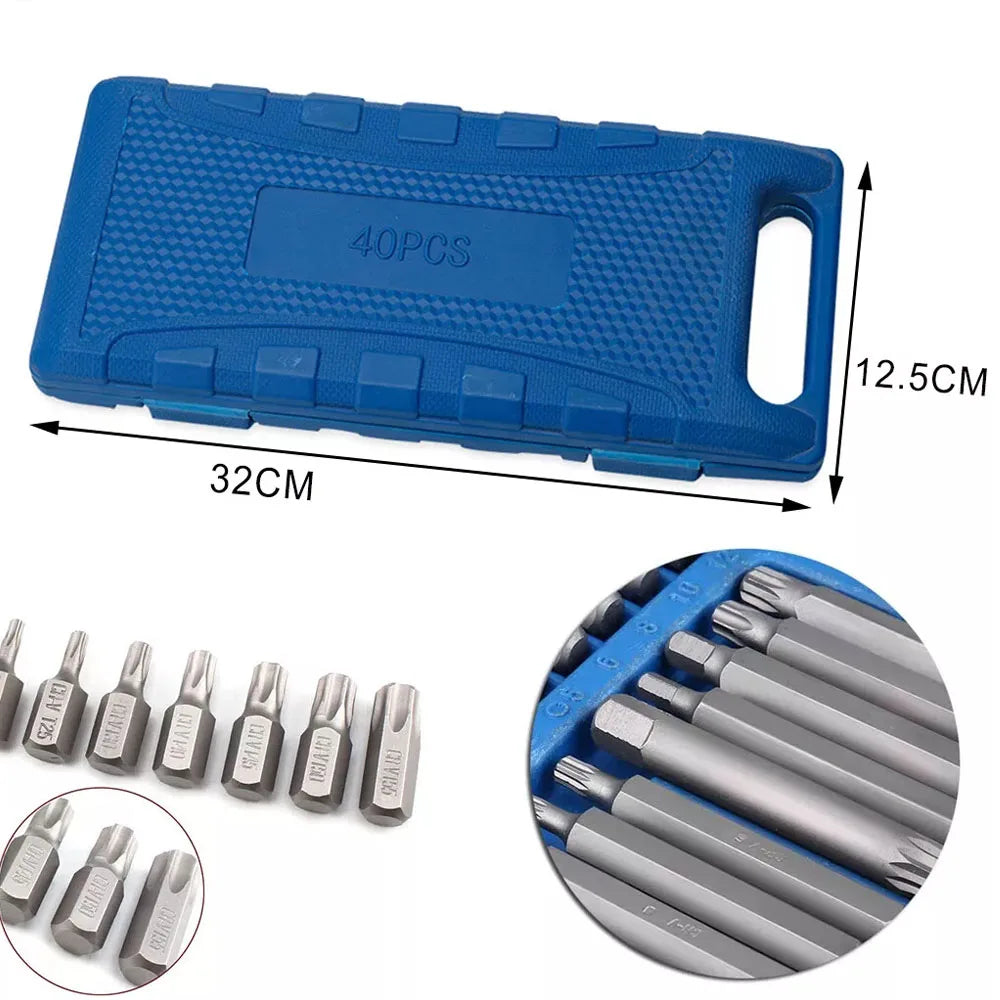 Set of 40 hex, torx and spline bits made from Alloy Steel.