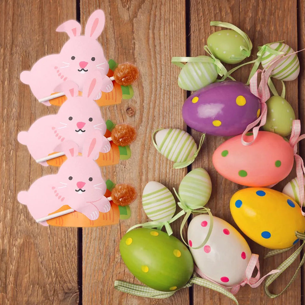 50pcs Easter Bunny Candy Bag Cute Rabbit Lollipop Cards Chocolate Cookie Gift Packaging Box Happy Easter Birthday Party Decor