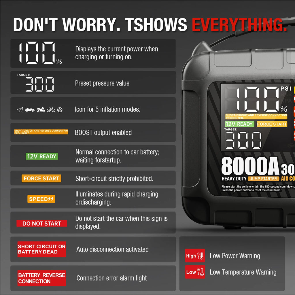 8000A Professional Heavy Duty Car Jump Starter Powerful Car 12V Car Battery Starter Booster Starting Device