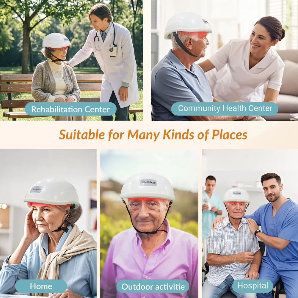 【More Applications】The physiotherapy helmet is helpful for the people who have the following troubles: Brain degeneration like Parkinson, Alzheimer,Dementia; Low cognitive ability (memory, learning ability, comprehension); Brian traumatic events: Stroke, cerebral palsy,Traumatic brain injury(TBI), Global ischemia, Brain injury, Headache, Migraine and Insomnia;Psychiatric disorders like Depression, Anxiety, Post Traumatic stress disorder,Aphasia,Autism spectrum disorder (ASD). In general, the brain neuromodulation helmet is effective to promote brain recovery and improve cognition ability.