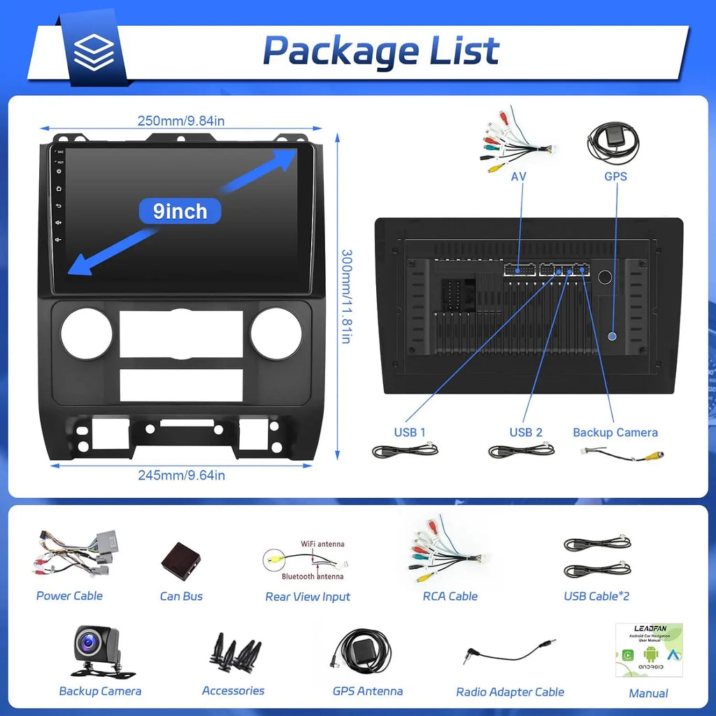 Android13 Car Radio For Ford Escape 2007 2008 2009 2010 2011 2012 Navigation GPS Multimedia Video Player Stereo wireless Carplay