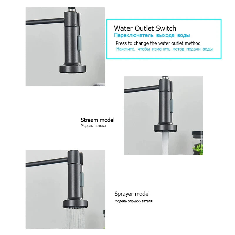Black Gray Kitchen Sink Faucet Dual Mode Spout Pull Down 360° Rotation Faucet Deck Mounted Hot Cold Water Mixer Tap Torneira
