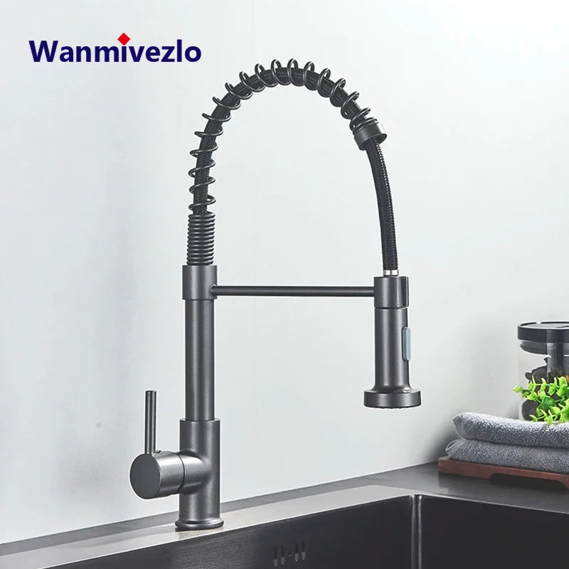 Brushed Nickel Spring Pull Down Kitchen Faucets Stream Spray Head Hot Cold Water Tap Brass Rotation Kitchen Mixer Tap Crane