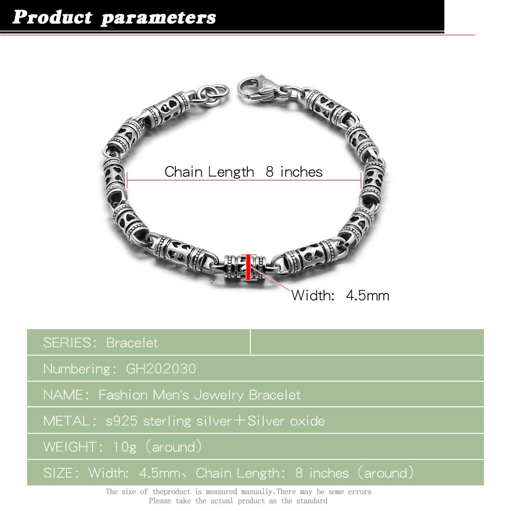 Moda Vintage Men100 % 925 pulsera de plata esterlina Punk Hip-Hop masculino sólido puro Silve Boy 20 cm cadena mano catenaria joyería