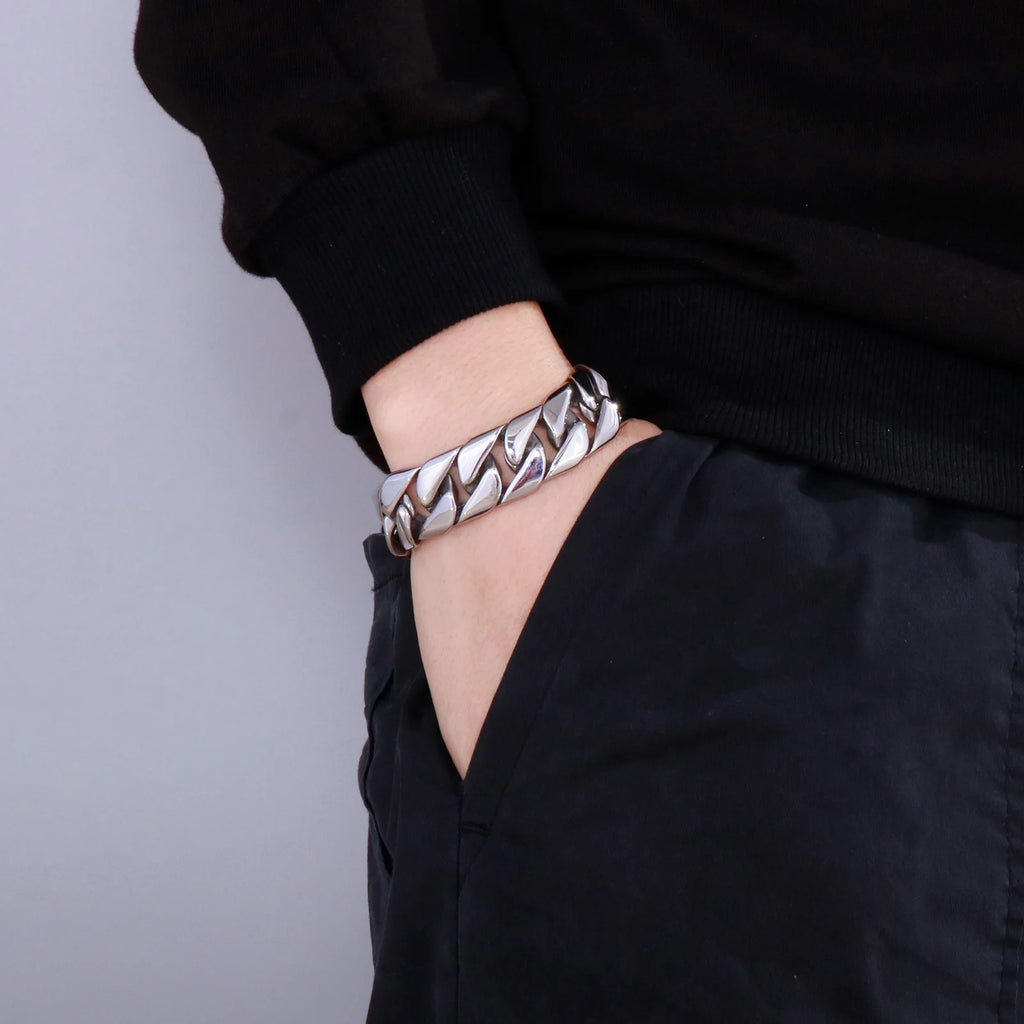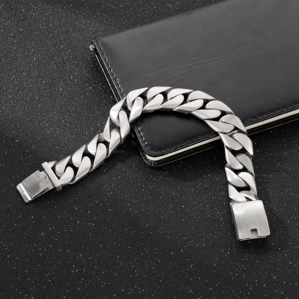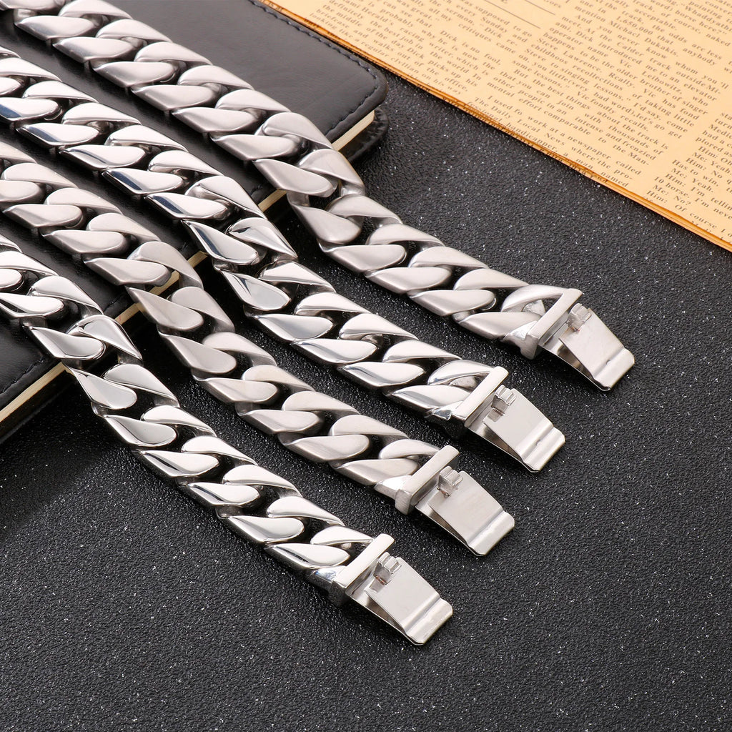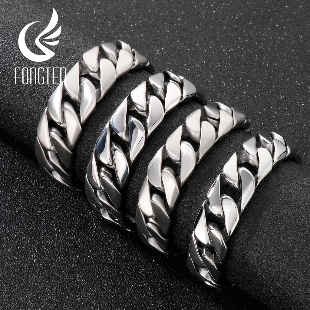 Fongten Cuban Chain Bracelet For Men Shiny Matte Stainless Steel Heavy Male Bracelets Bangle Silver Color Curb Jewelry