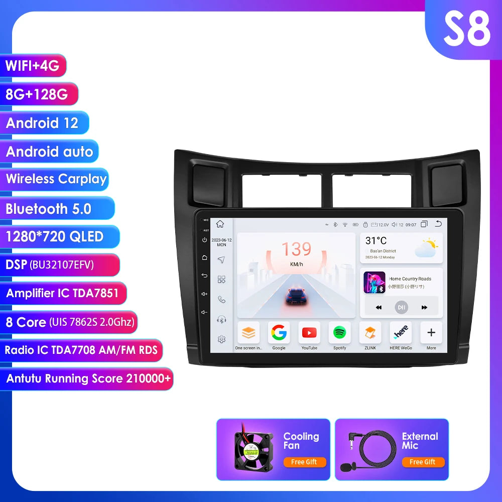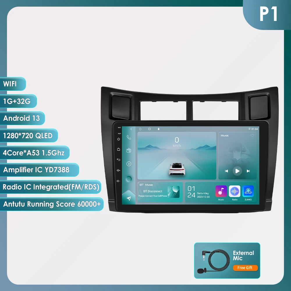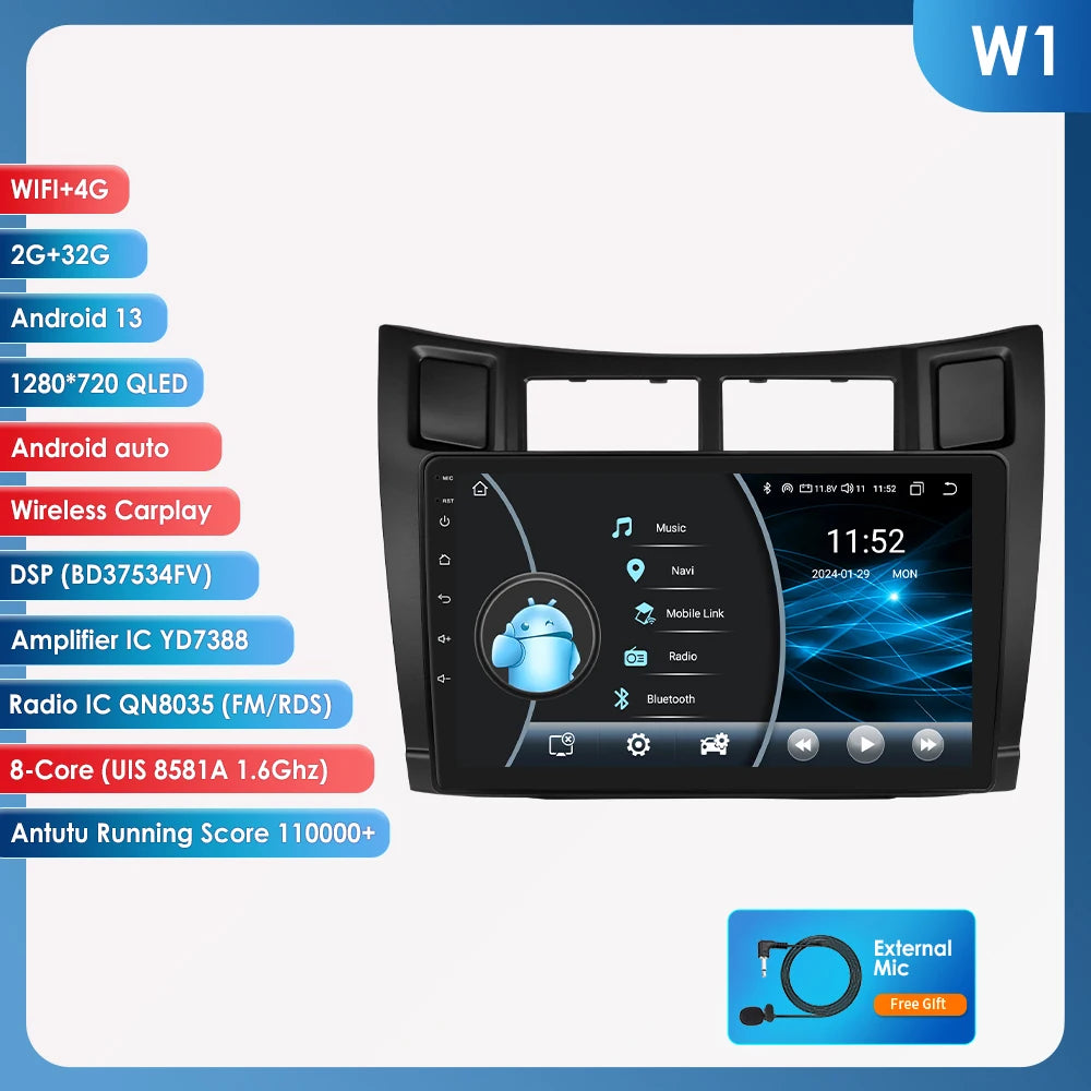 Hizpo 2Din 9inch CarPlay Android Auto Car Radio for Toyota Yaris 2005 - 2012