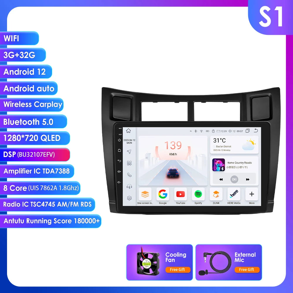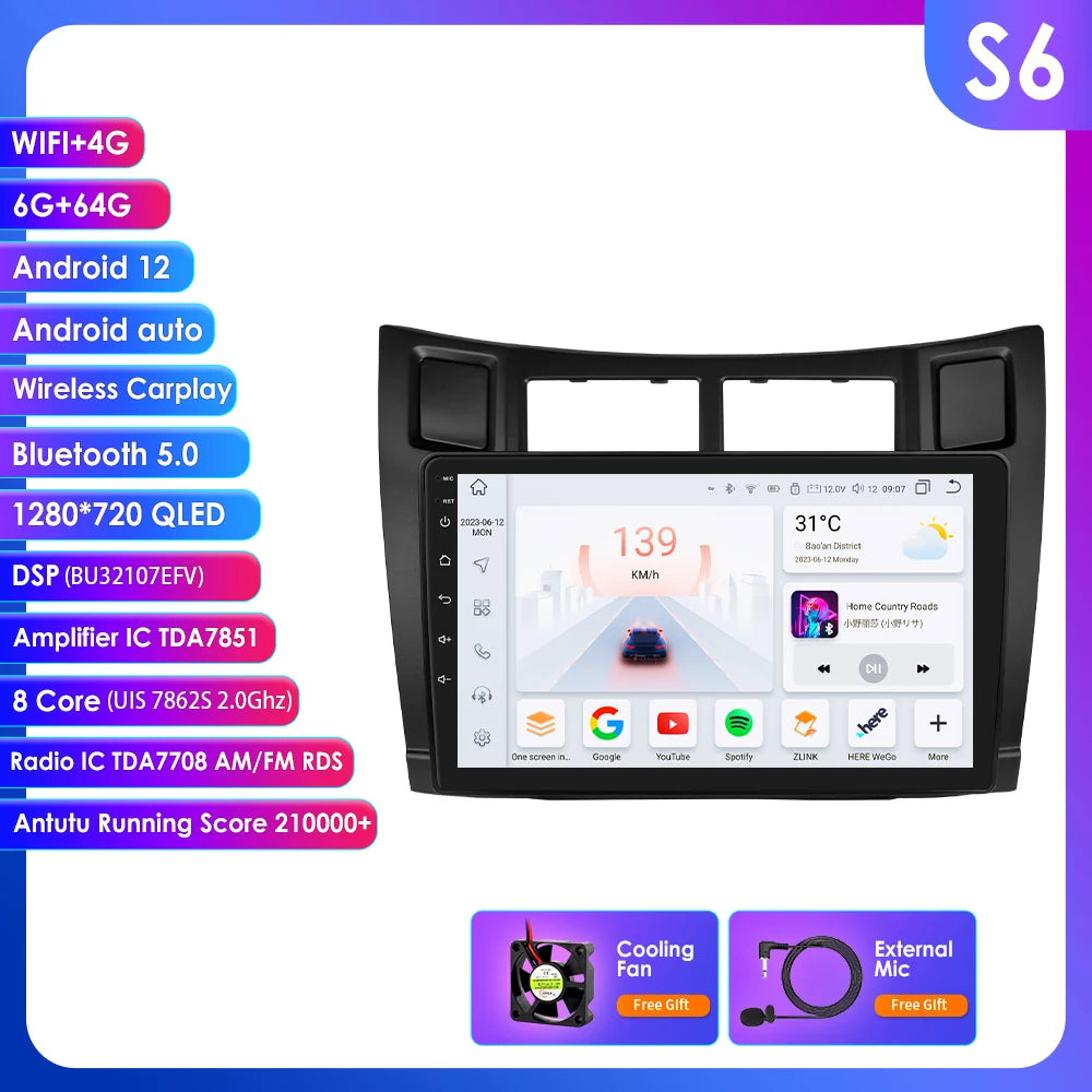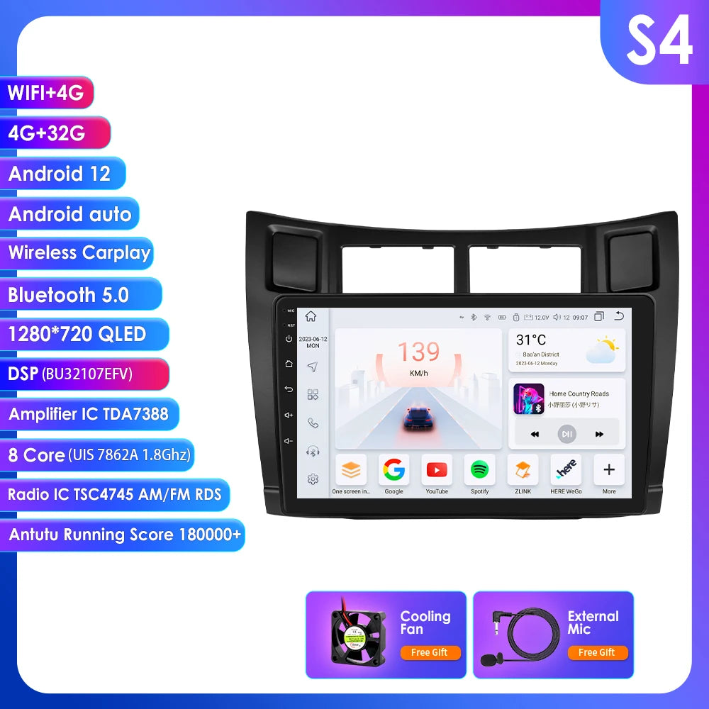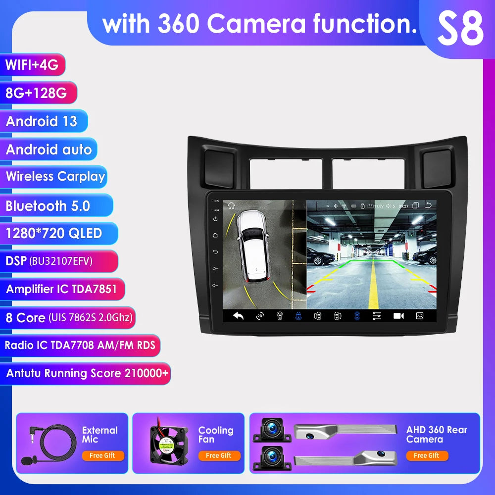 Hizpo 2Din 9inch CarPlay Android Auto Car Radio for Toyota Yaris 2005 - 2012