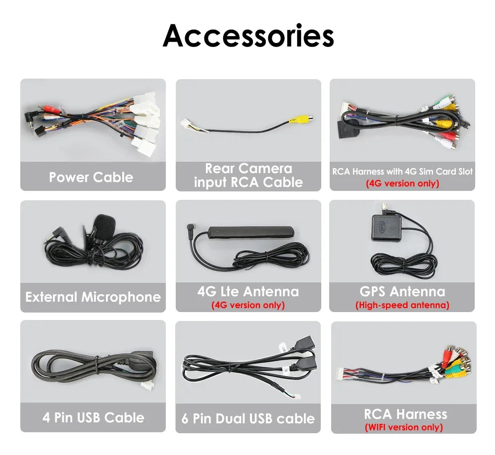 2) ADAS DVR Camera, Tire Pressure Monitoring, OBD2, External Microphone, RCA cable;