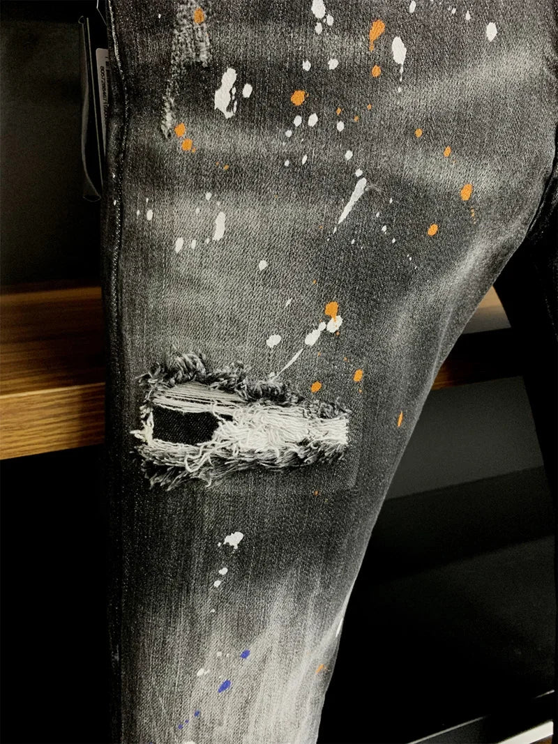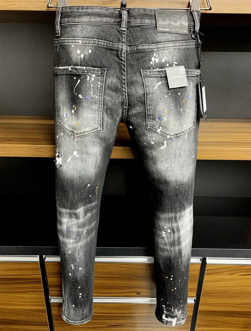 ICON BRAND dsq2 Men Jeans Denim Pants Hole Slim Pencil Trousers Metal Buttons Party Classics Fashionable Black D2 jeans