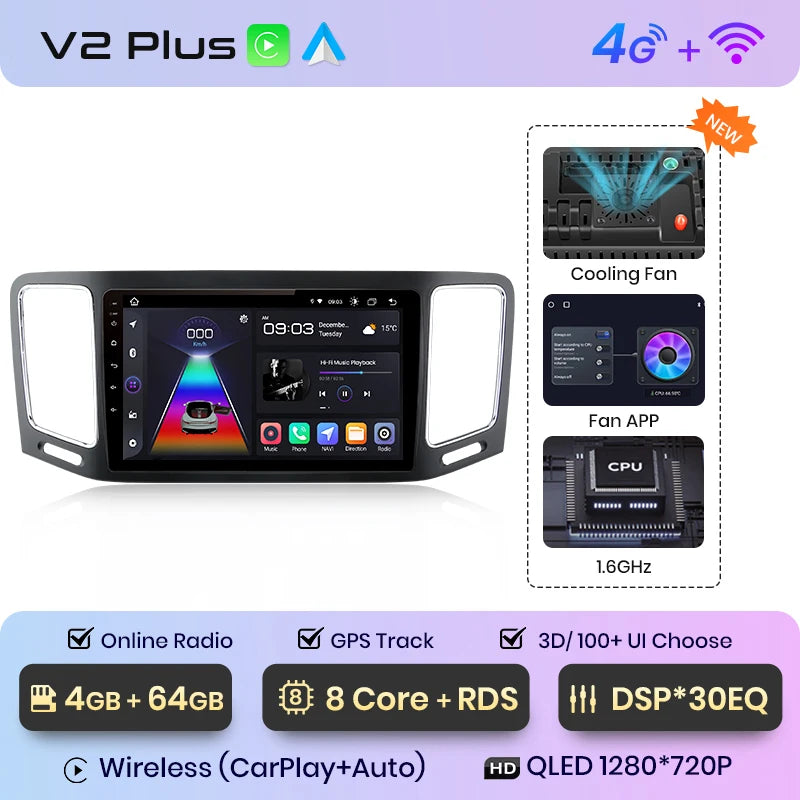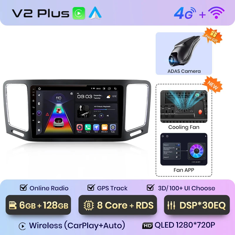 4, 4G Network + Steering Wheel Control + RDS +Built-in Navigation Offline Maps + High-quality DSP chip makes the sound quality playback even better;