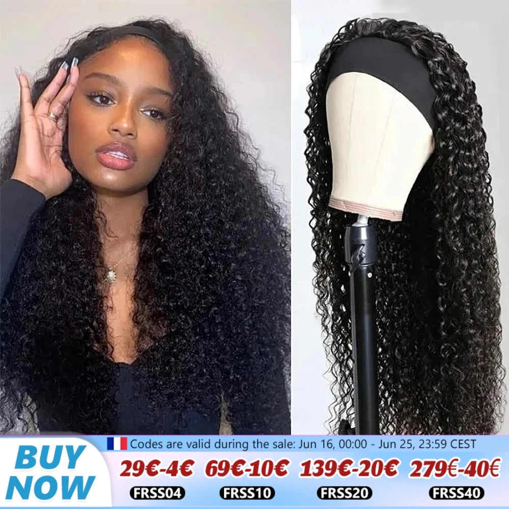 Brazilian Human Hair Wig Headband Kinky Curly Wig for Black Women Cheap 150 Density Glueless Remy Hair Wig Scarf Wig 22inch