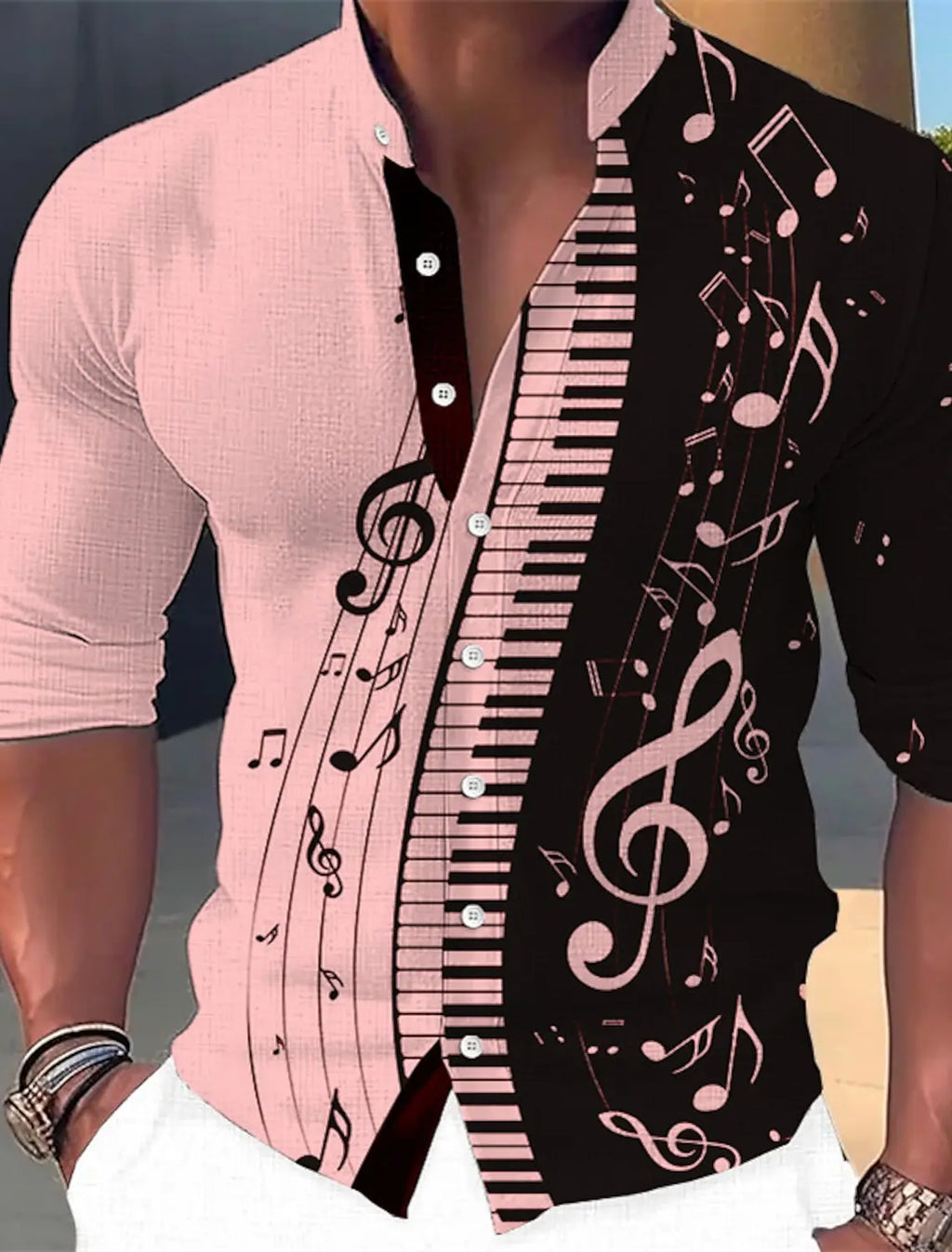Men's Shirt Graphic Print Music Notes Outdoor Street Long Sleeve Printed Clothing Fashion Streetwear Design Casual