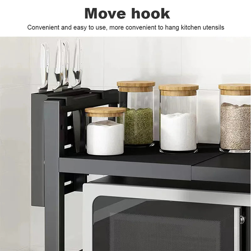 Microwave Oven Rack Seasoning Shelf Bilayer Oven Storage Rack Retractable Countertop Organizer Kitchen Accessories