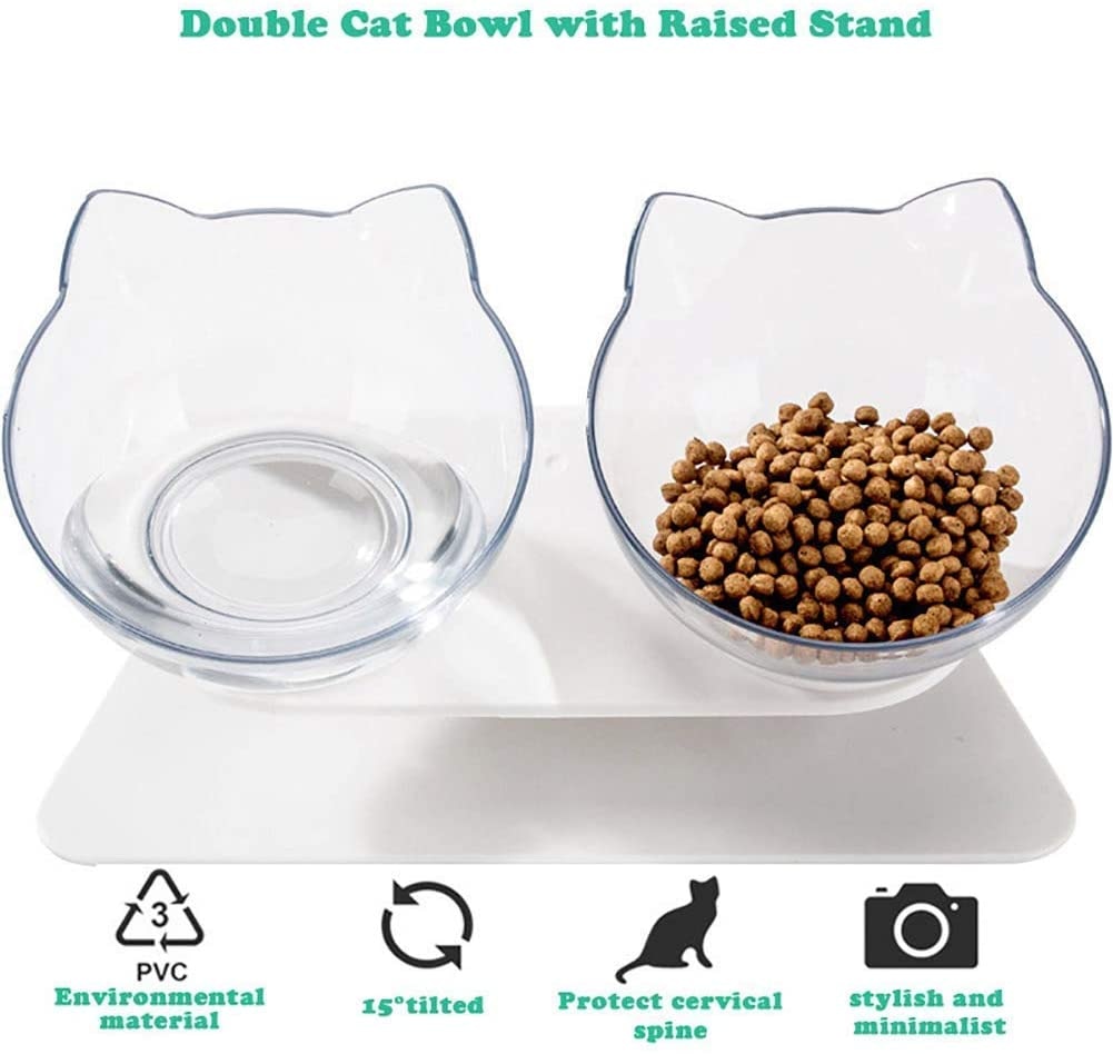 Cuenco antideslizante para gatos, cuencos dobles transparentes y duraderos para mascotas con soporte elevado para gatos, alimentador de comida para perros, cuenco de agua para bebidas, suministros para mascotas