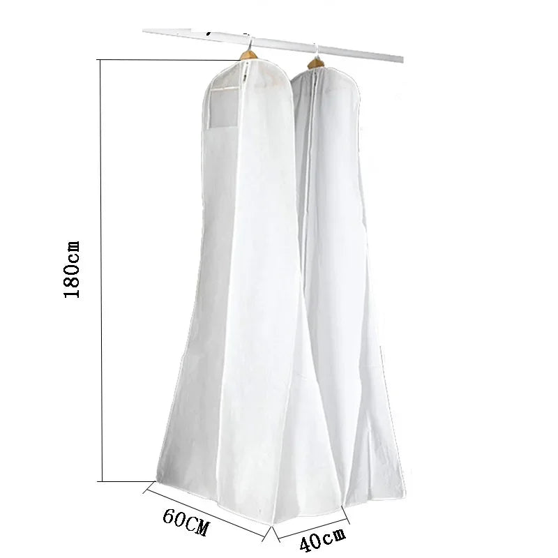 - Single white extra wide large long full length breathable wedding bridal gown dress bags covers garment storage travel carrier bags covers 70.8"(180cm) with 16" gusset for women brides