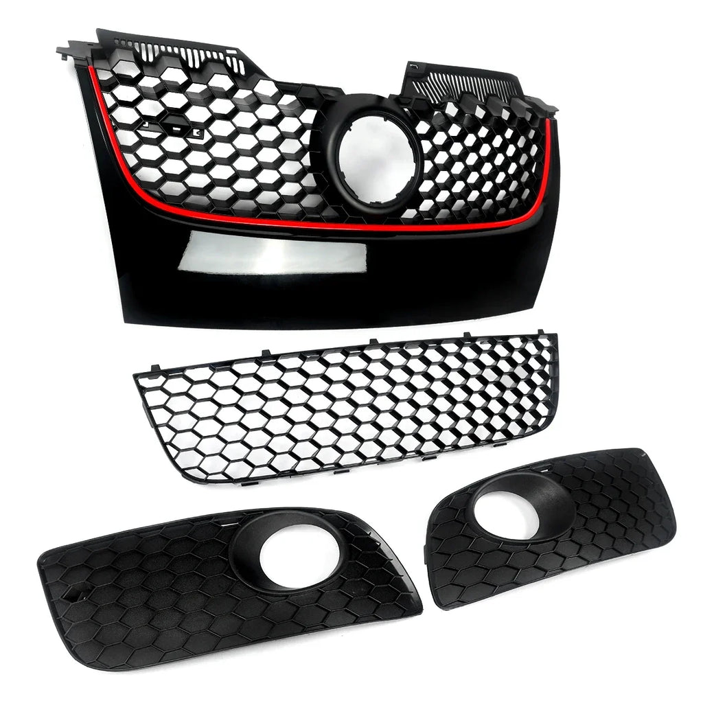 Set of 3 For 06-09 VW MK5 Jetta /GLI /GTI Front Bumper Grille Honeycomb Style