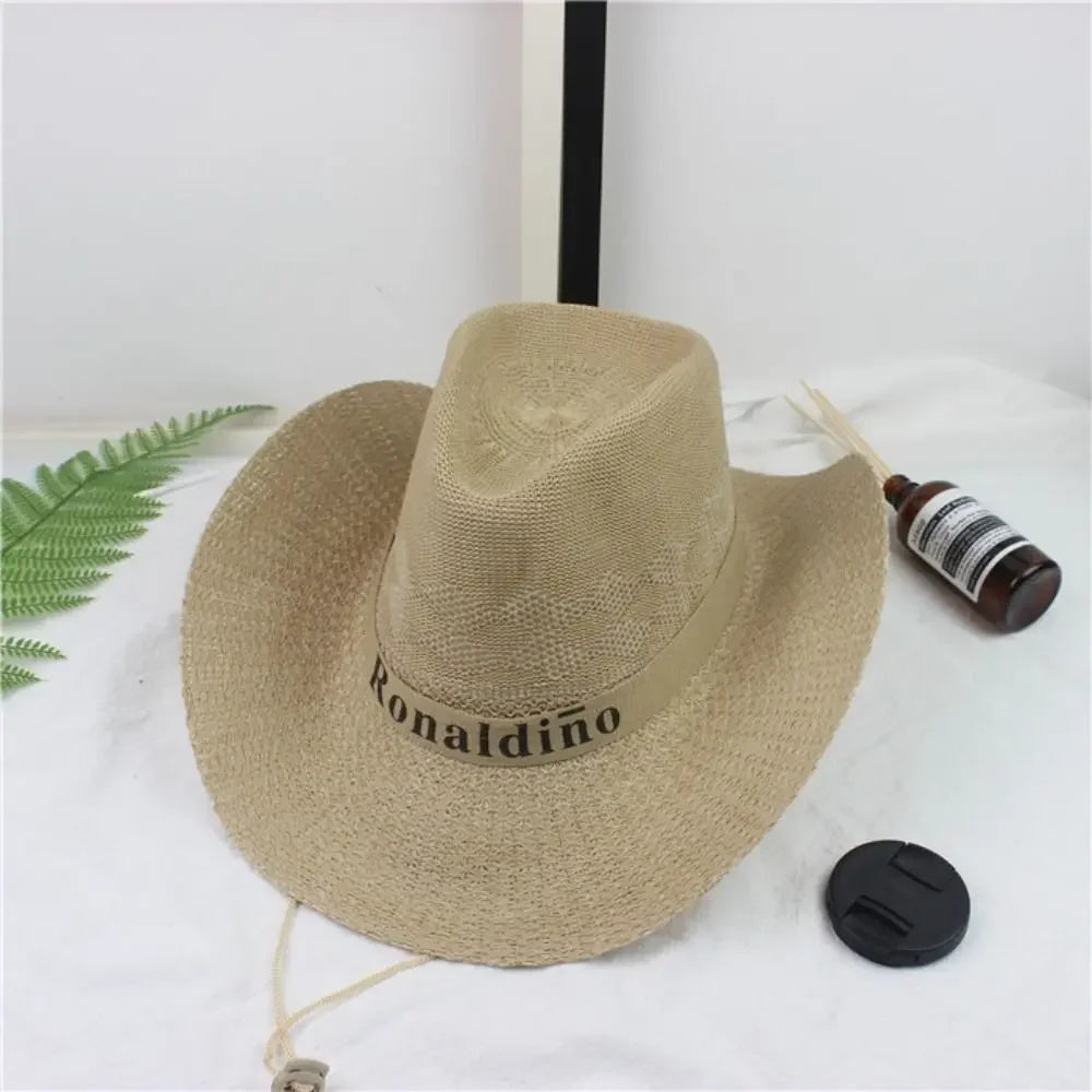 Straw Sun Hat Mens Womens Casual Breathable Cowboy Wide Brim Jazz Hat Sun Protection Fashion Beach Caps Summer