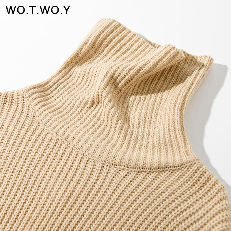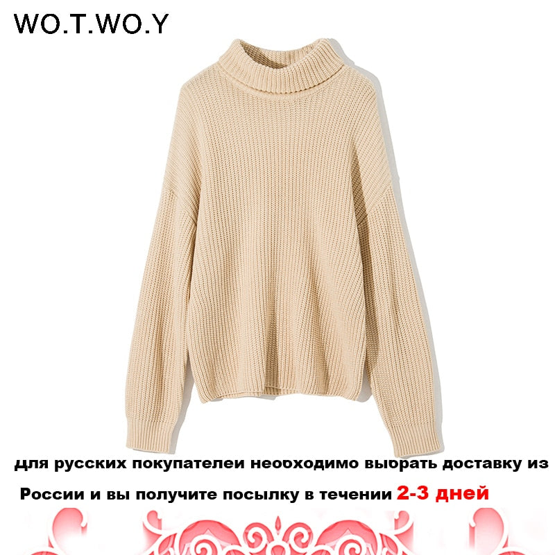 WOTWOY, suéter de cuello alto de punto para otoño e invierno, suéteres gruesos largos de gran tamaño para mujer, jerséis de Cachemira sólida, Tops coreanos