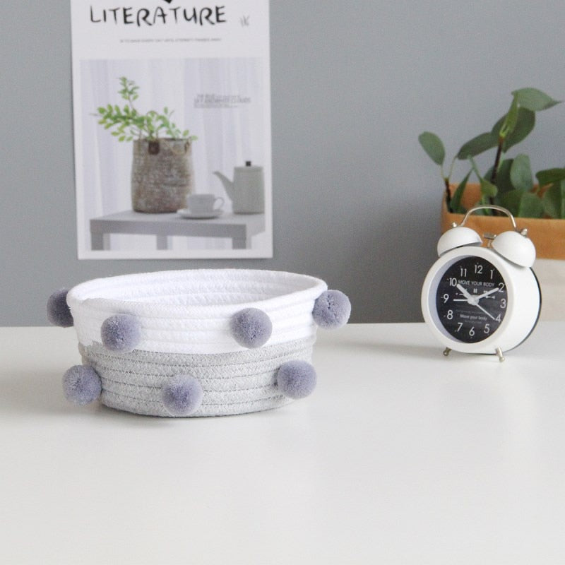 INS Pompom Cotton Rope Storage Baskets Handmade Woven Dirty Clothes Laundry Basket Kids Toys Desktop Sundries Organizer Hamper