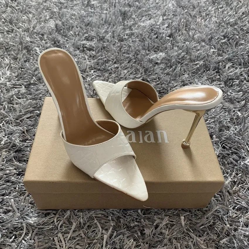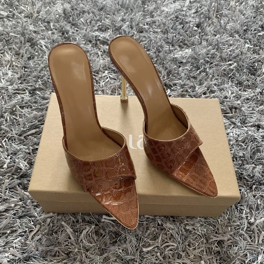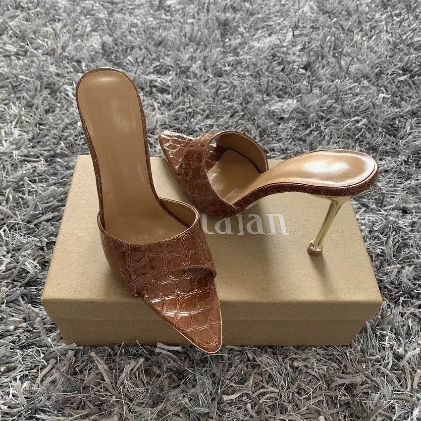 Summer women sandals snake print Strappy Mules high heels Slippers Sandals flip flops Pointed toe Slides Party shoes Woman