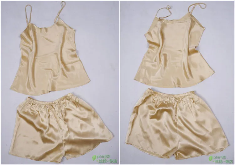 Women 100% Natural Silk 16 momme satin silk Camisole with Shorts Pajama Set Sleepwear M-2XL YM004