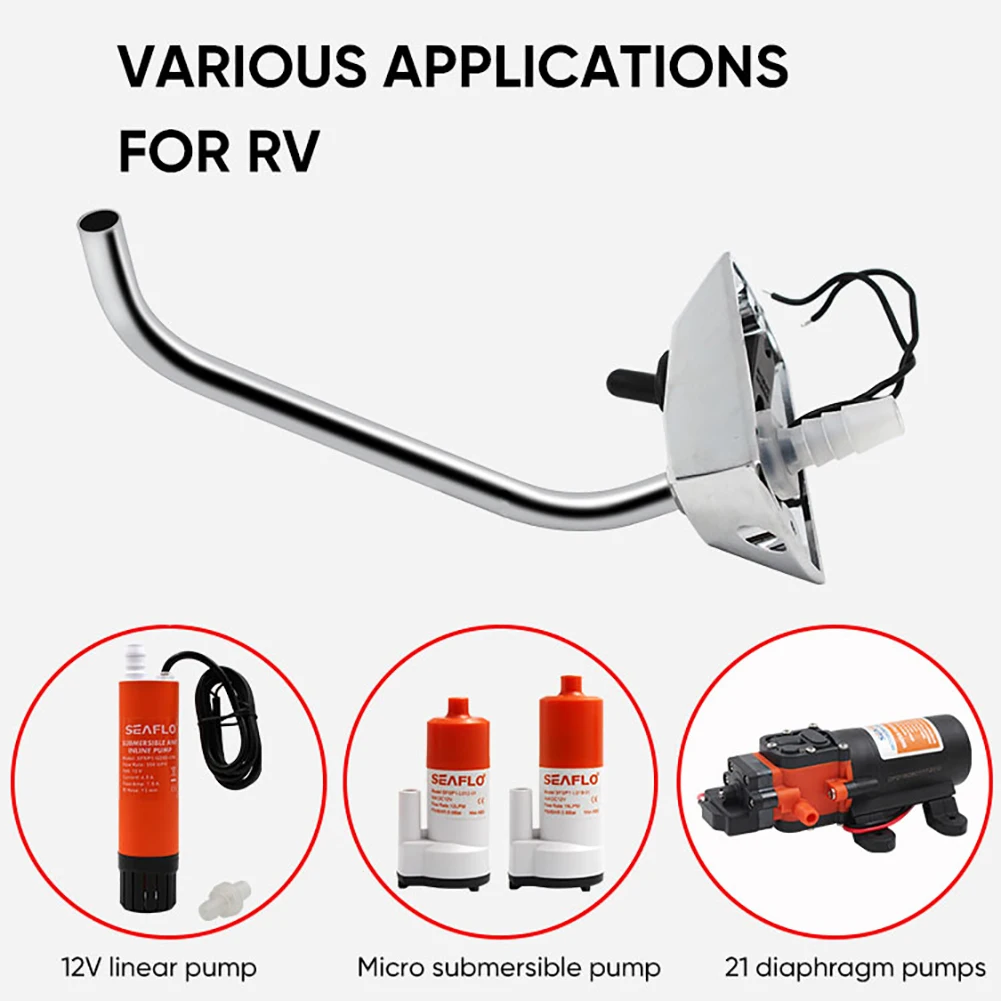 2. Stainless Steel Oscillating Spout: This self-priming boat water faucet is designed with a zinc alloy metal tap base and stainless steel oscillating spout, which reduces wear and tear during use and provides a higher quality experience for the user.