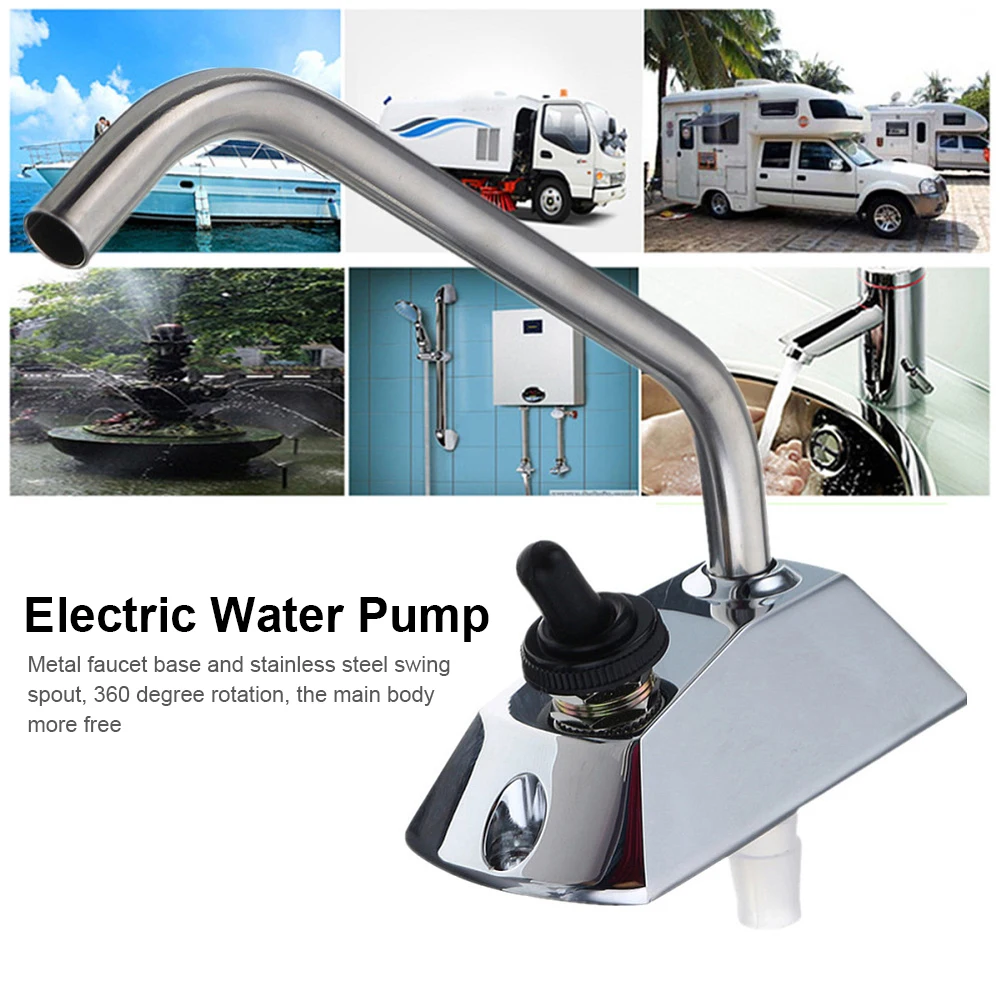 12V Automatic Faucet Tap Self-Priming Boat Water Faucet Stainless Steel 360 Degree Rotation for Boat Galley Caravan Motorhome RV