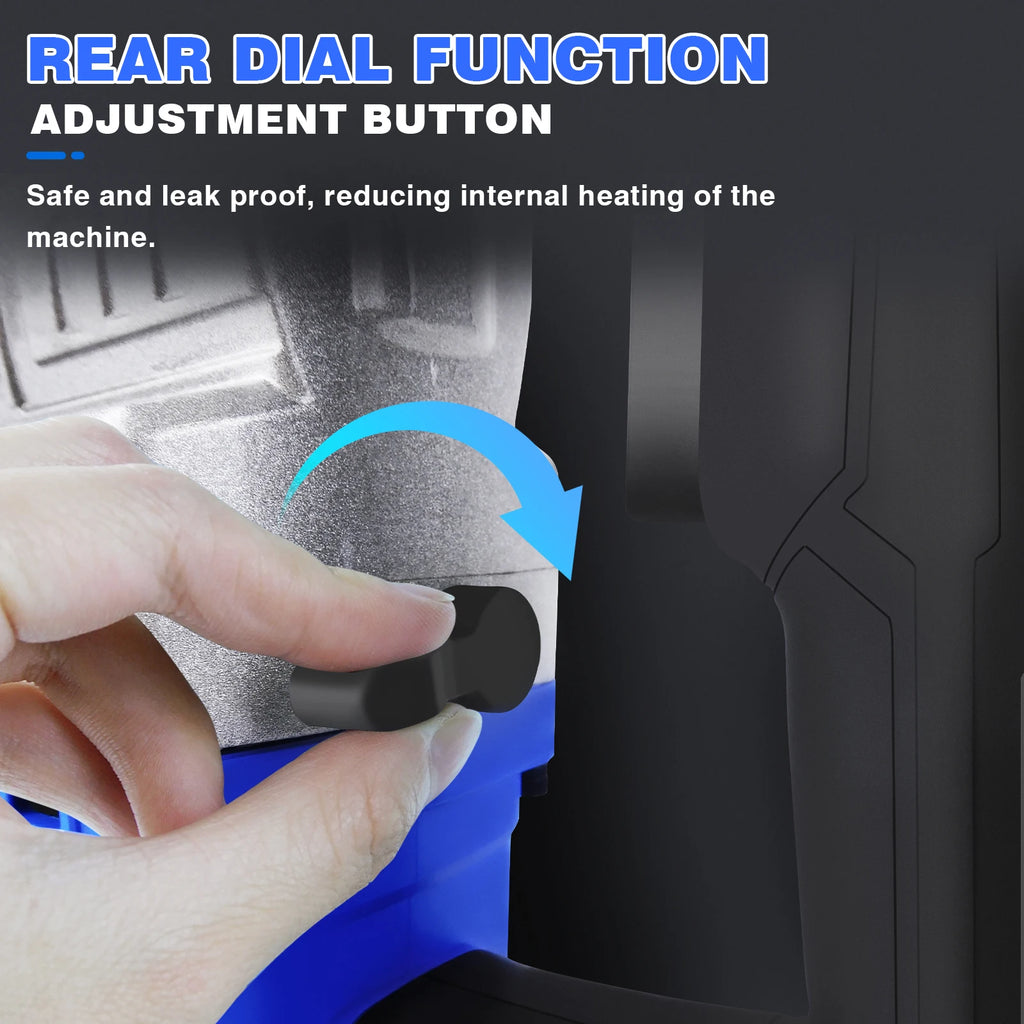 đă6 Adjustable SpeedsăThe rotation speed of the rotary hammer can be adjusted between 0-800 RPM for more precise control, and the maximum impact rate can be 4000BPM. And the upgraded damping technology can effectively reduce the damage during work. With a good spiral heat dissipation system, rotary hammer's motor will not be at high temperature even after a long time working.