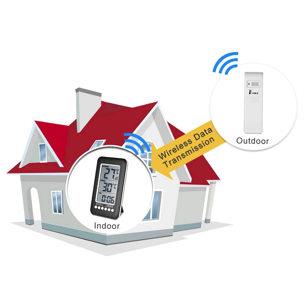 2022 LCD ℃/℉ Digital Wireless Indoor/Outdoor Thermometer Clock Temperature Meter With Transmitter