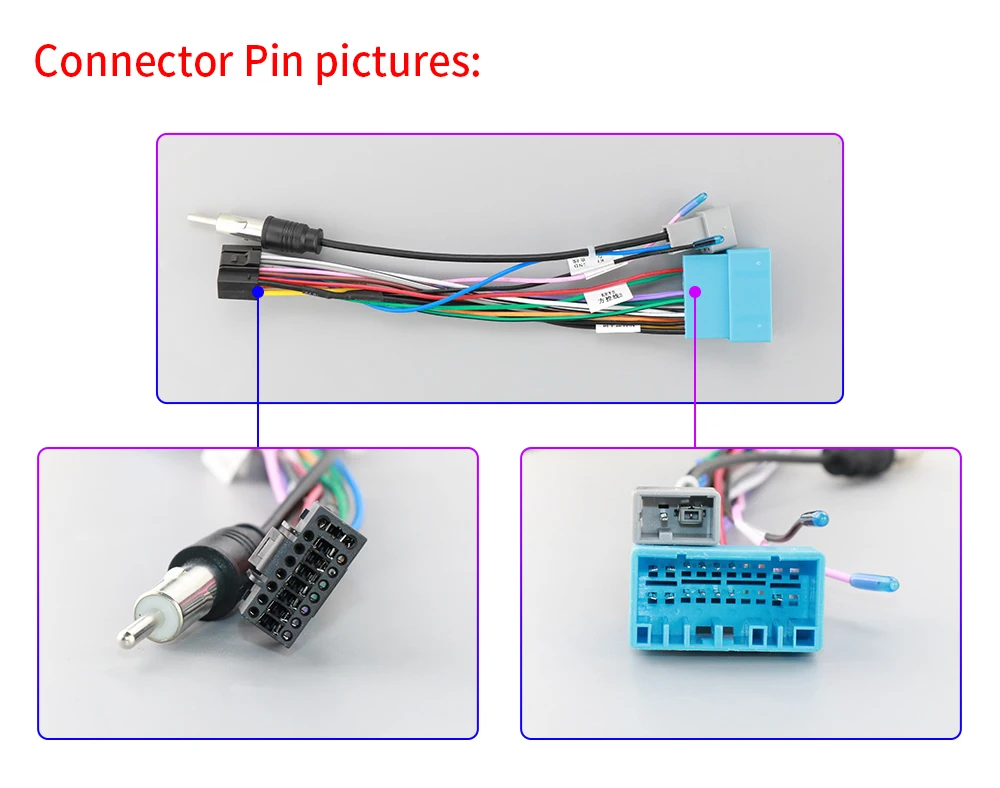 (Notice: if the connector pin to install with the car wires' cable is not the same as them which needs to contact the after-sale service to order special wire for installing)