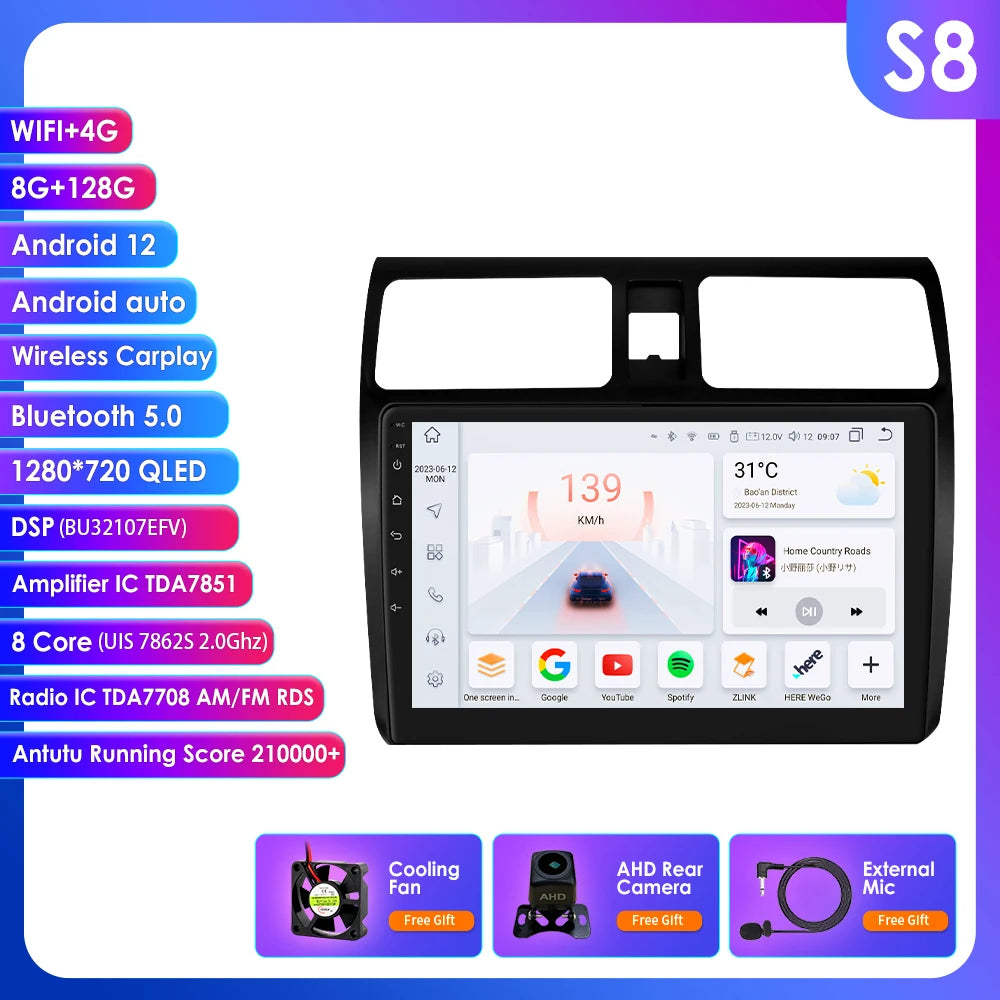 2) Built-in Carplay/ Android Auto: S1/S2/S3/S4/S5/S7/S8 version supporting, just use your phone cable connect it, stable and easy to use;