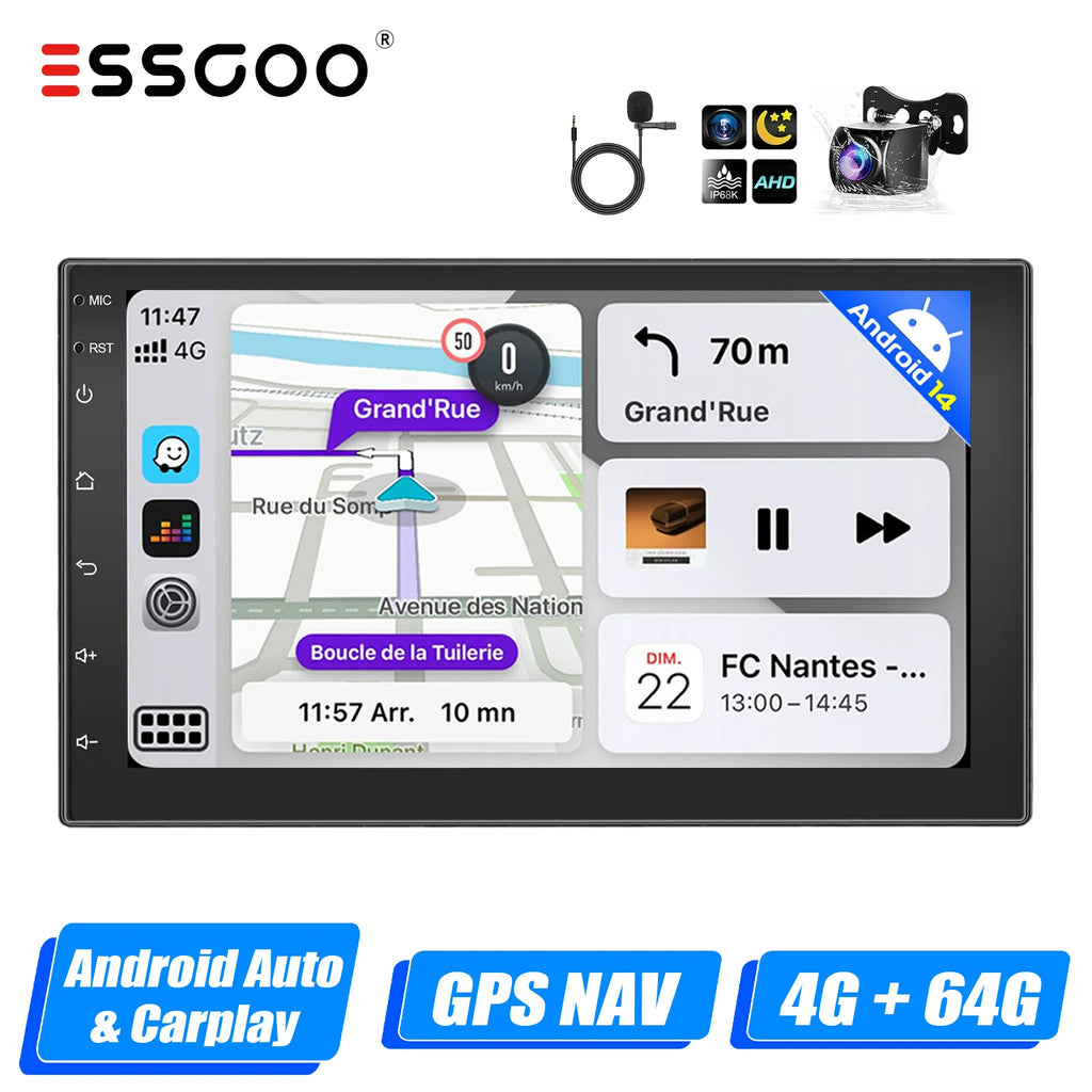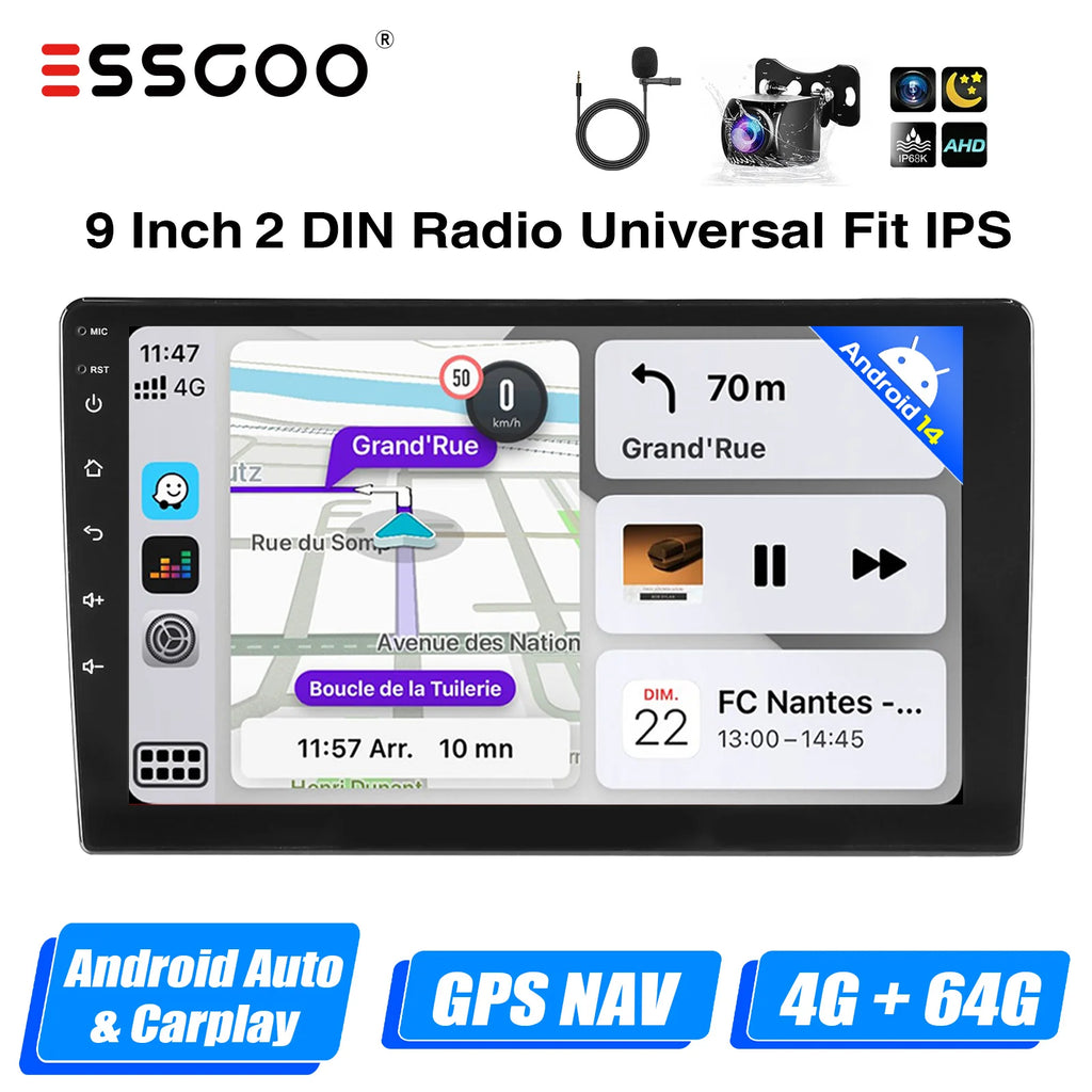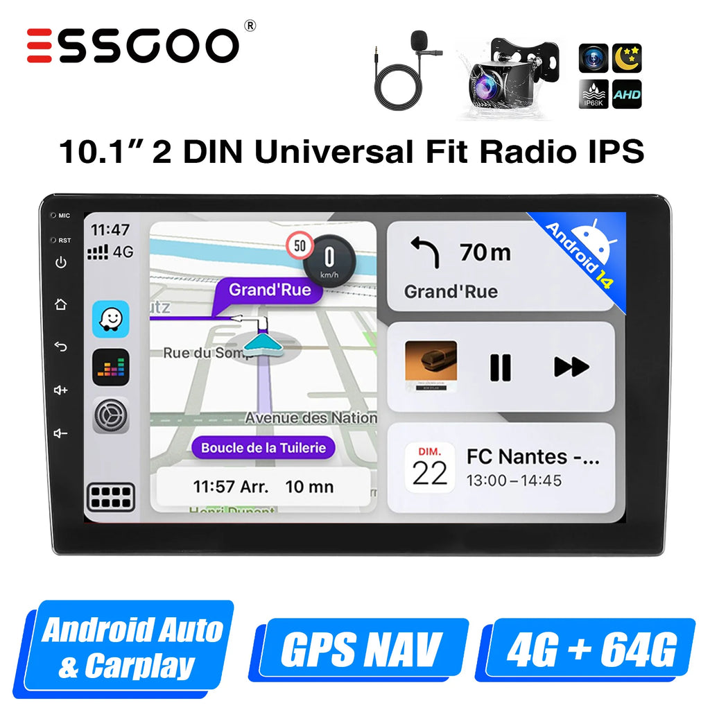 2 DIN Android Car Radio: The Android car radio with IPS capacitive touch screen, 64G ROM provides enough space to download your favourite apps and videos, so driving won't be boring anymore. With two USB ports, it supports fast mobile phone charging. With the rear microphone input, you can add a microphone to make your voice clearer (optional).