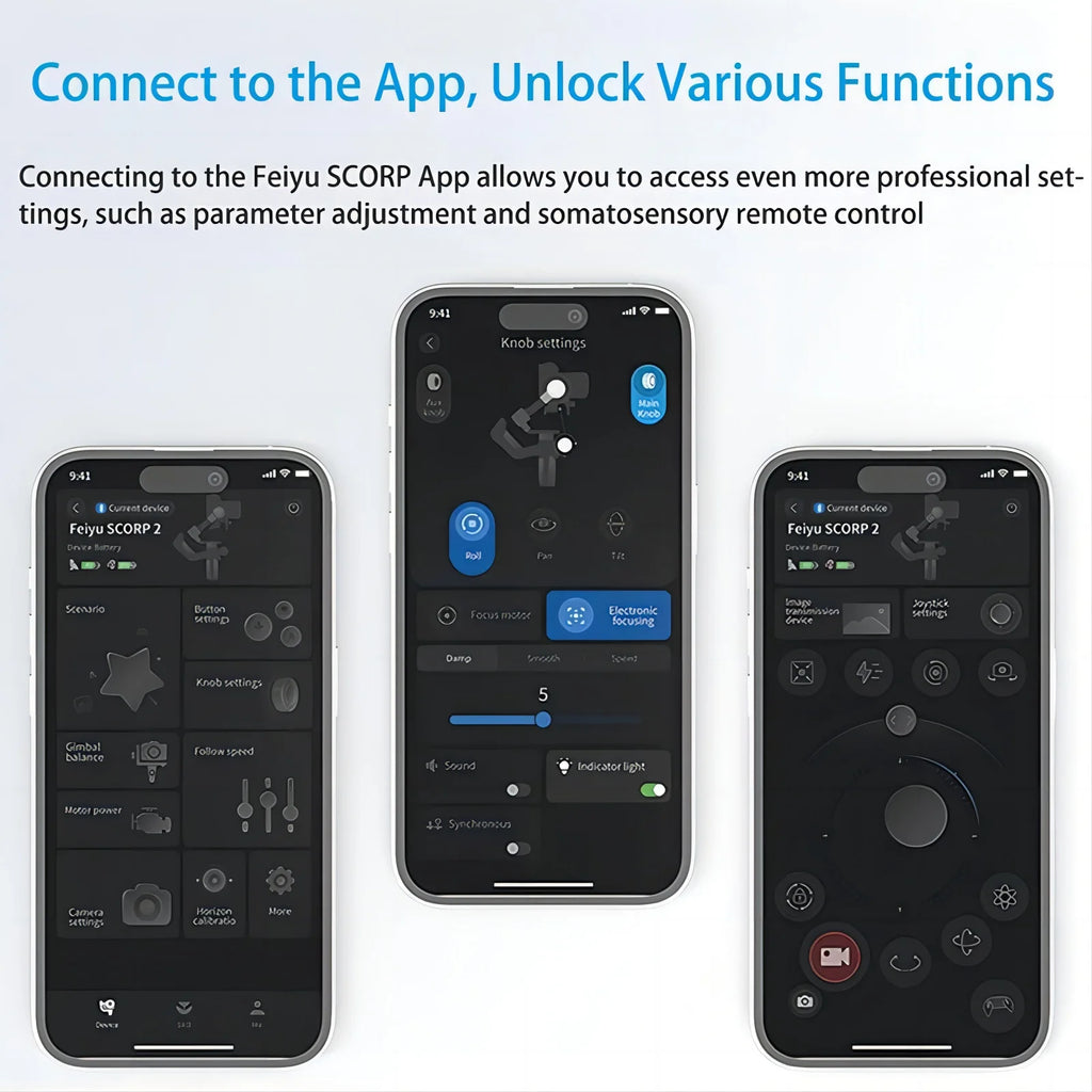 Connecting to the Feiyu SCORP App allows you to access even more professional settings,