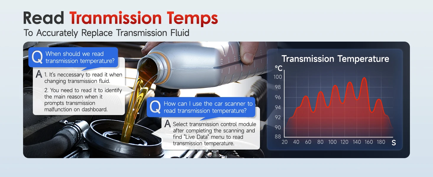 The transmission system is one of the powertrain control modules,but some issues like unworking electronic accessories and broken transmission computer will keep your transmission light flashing. It's hard to locate the accurate error within limited time. Fortunately, this transmission scanner will assist you to have a fast scanning of your vehicle and read the fault code easily, shutting down the waring light within minutes when you finish the repair.