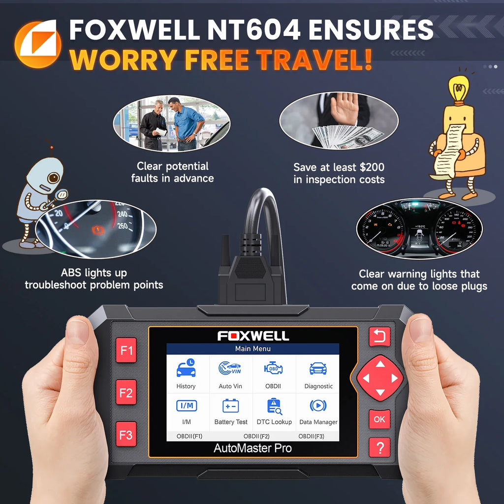 FOXWELL NT604 Elite scan tool is the 2025 new version from FOXWELL, which is designed for those car owners who want to figure out the cause issue before fixing the car problem via scanning the most common systems like abs srs engine and transmission.The NT604 Elite diagnostic tool comes with latest software, which can be used out of box. No need to waste time to download the software first.