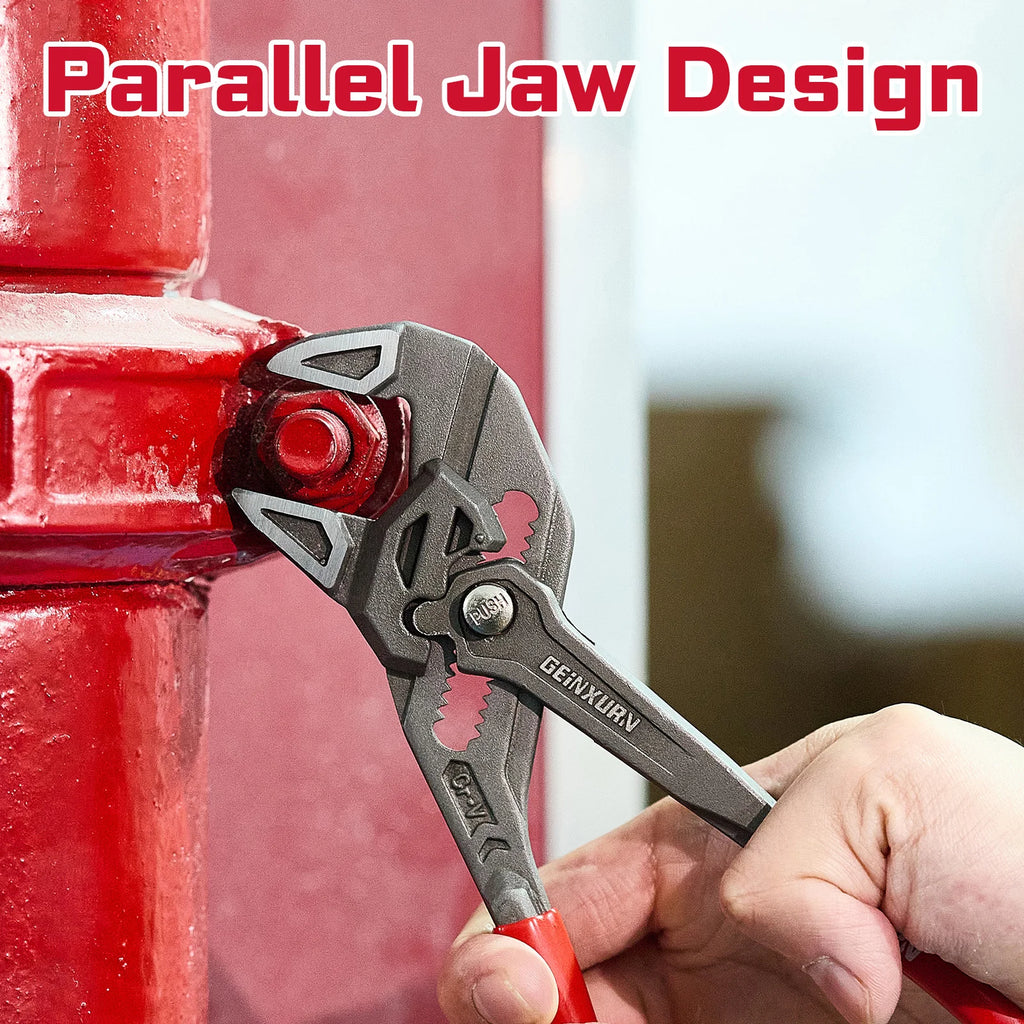 Geinxurn Heavy Duty 7-Inch Water Pump Pliers w/ Quick Button, 15-Position, 1.5" Capacity, CR-V Steel Parallel Jaws