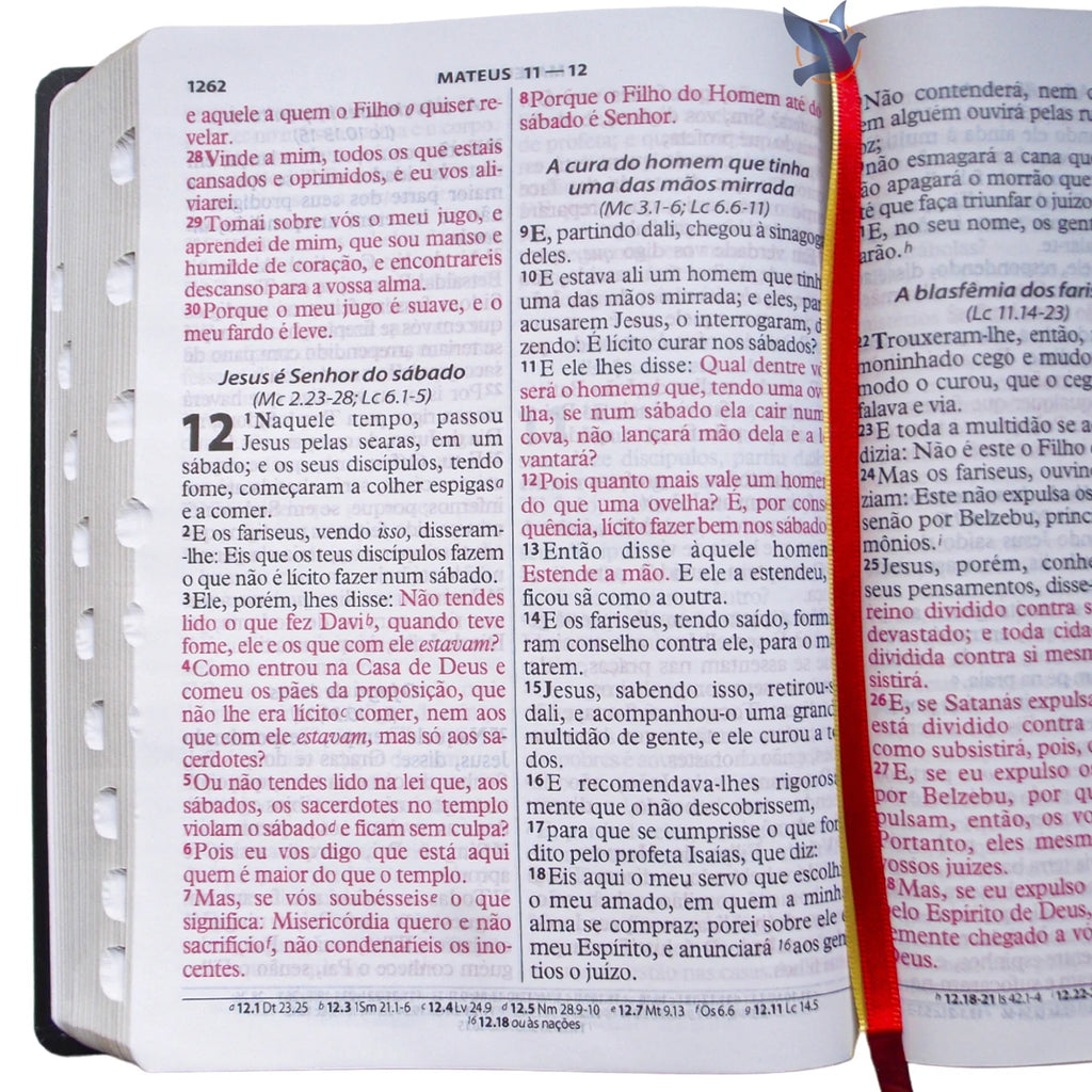 Holy Bible in translation by João Ferreira de Almeida, version Almeida Revista Corrigida (ARC). Flexible Cover in Synthetic Material, Black color. With Extragigant letter, an enlarged font size, which makes it easier to read, making it more comfortable. Ideal for those who want to read God's Word daily. Has Index on the Side and Two Page Marker Tapes. Large size, 1,664 pages. Complete Holy Bible with Old and New Testaments, the Words of Jesus are highlighted in Red in the New Testament. No Christian Harp.