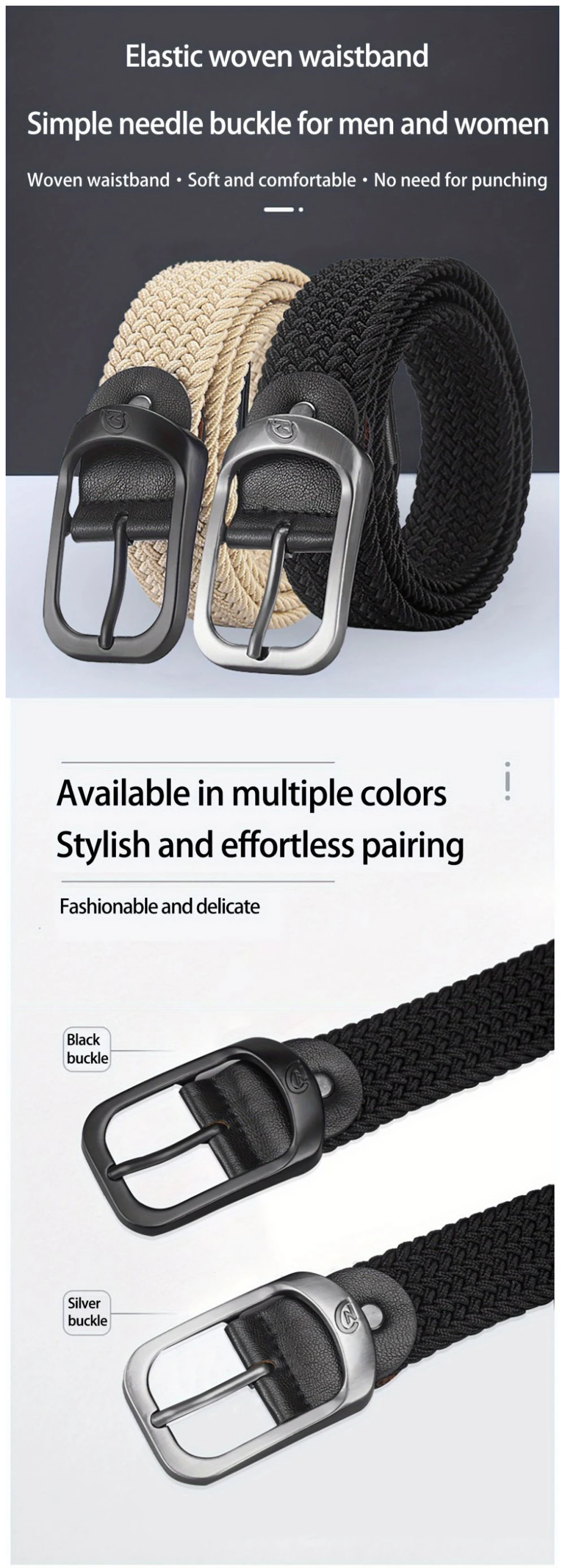 Men's Belt Casual Woven Elastic Belt Outdoor Sports Women's Belt No Need for Punching Climbing Work Belt For Men Women Fashion