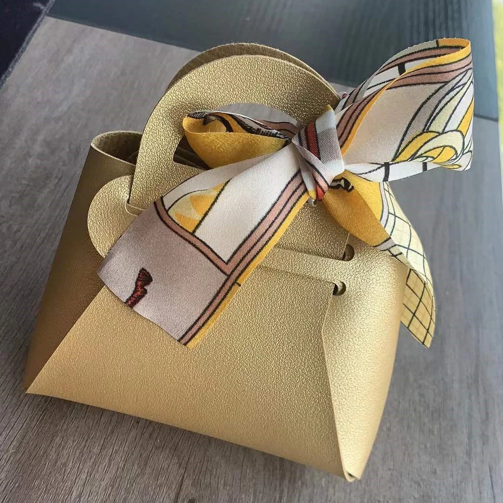 1 PCS Leather Gift Bags Wedding Favour Bag for Guest Mini Handbag with Ribbon Candy Packaging Box Eid Distributions Party Decor