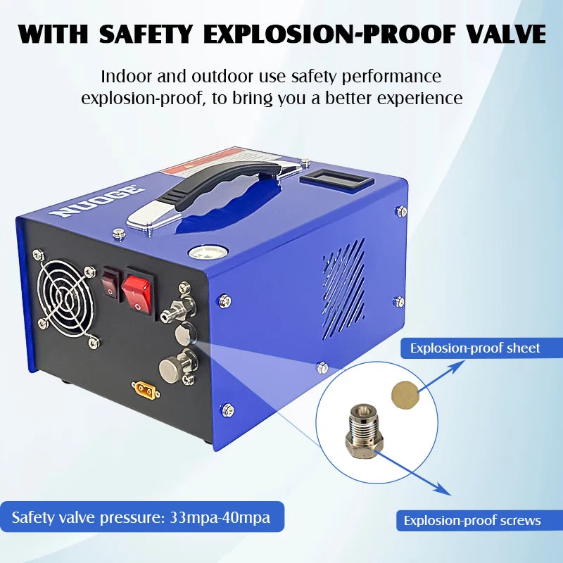 The explosion-proof valve is designed to prevent you from forgetting to turn off the machine, when the pressure of inflation reaches the pressure that the machine can bear, the explosion-proof valve will automatically burst open and release the gas, as long as you install the explosion-proof valve back, the compressor can work intact again, ensuring that the compressor will not damage the compressor when the pressure is exceeded.